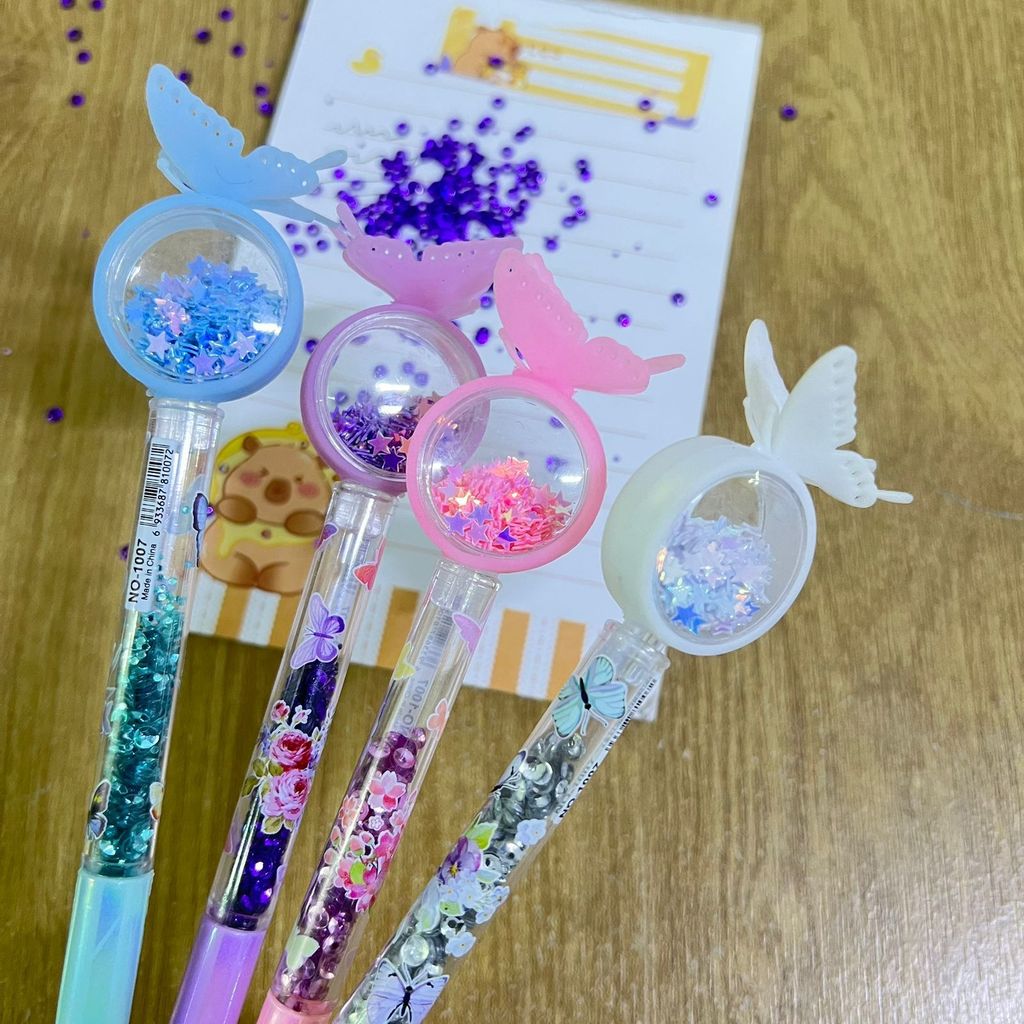 Caneta Gel Borboleta Cristal Lantejoula 0.5mm Sortidas - Papelaria Fofa