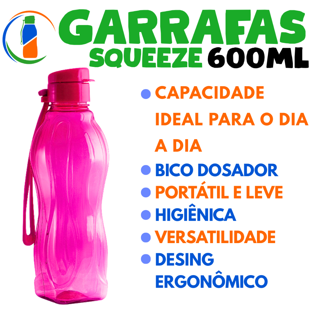 Kit 30 Garrafa Squeeze 600ml – Hidratação na Medida Certa!
