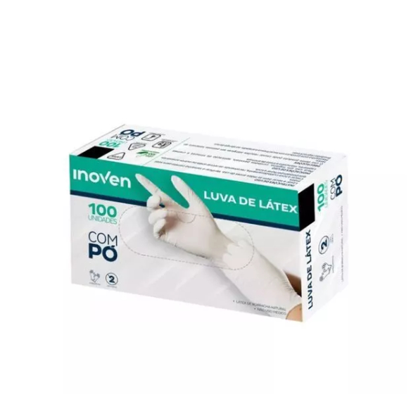 Kit 1 e 2 Caixas Luvas de Látex Inoven Branca com Pó Descartável Caixa com 100 Unidades