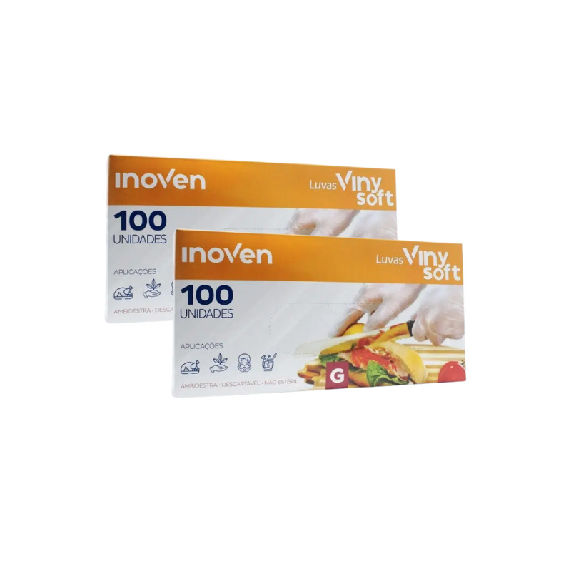Luva Vinysoft sem Pó Transparente Inoven com 100 unidades para Alimentos, Cosméticos, Tatuadores