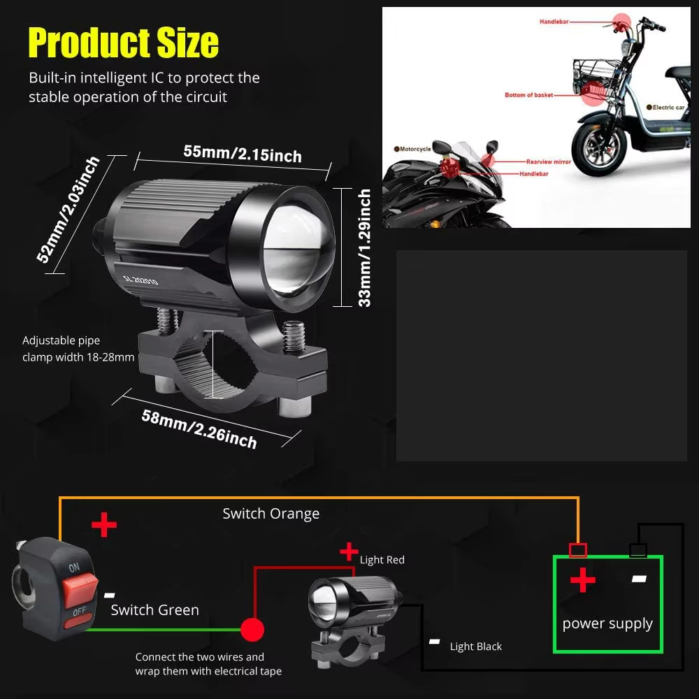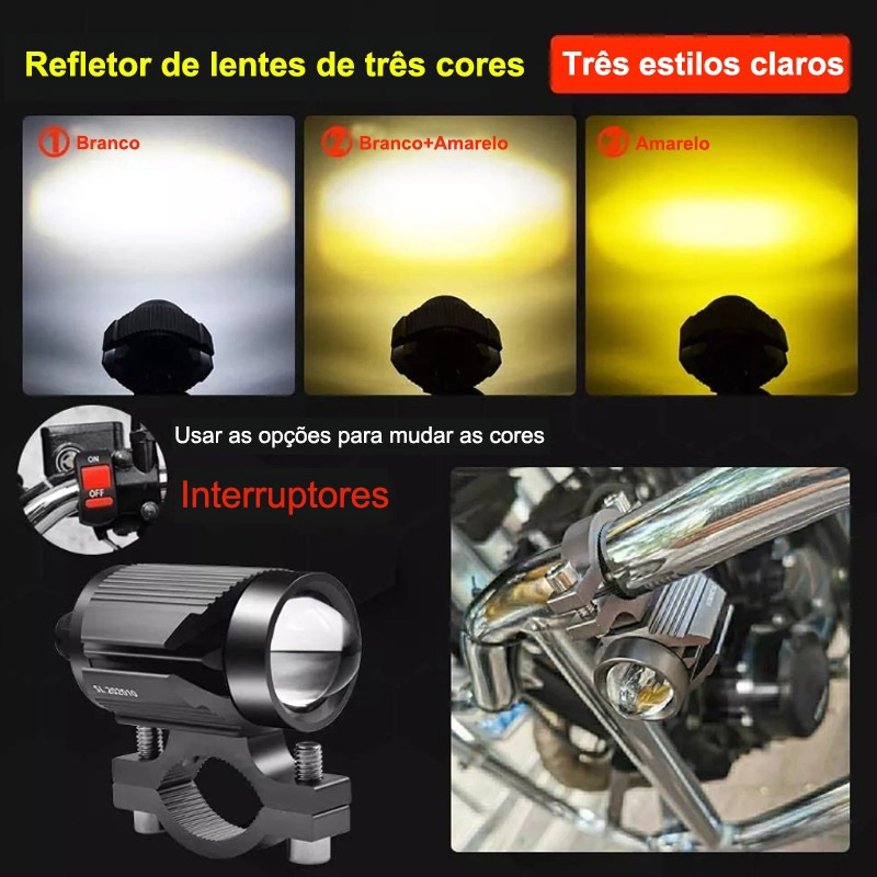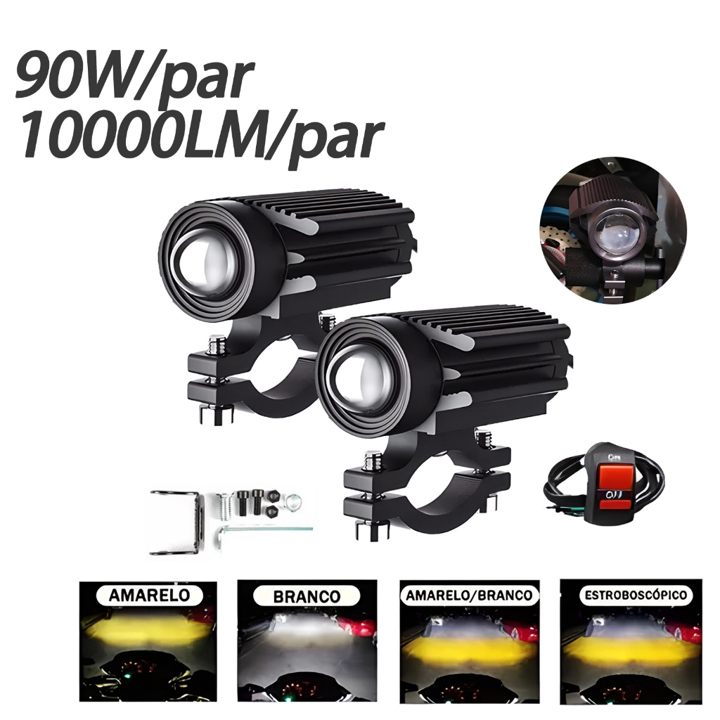Par Farol De Milha Para Moto LED 90W 10000LM Faróis De Motocicleta Auxiliar Alto/Baixo De Cor Dupla