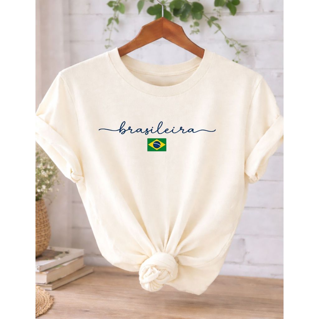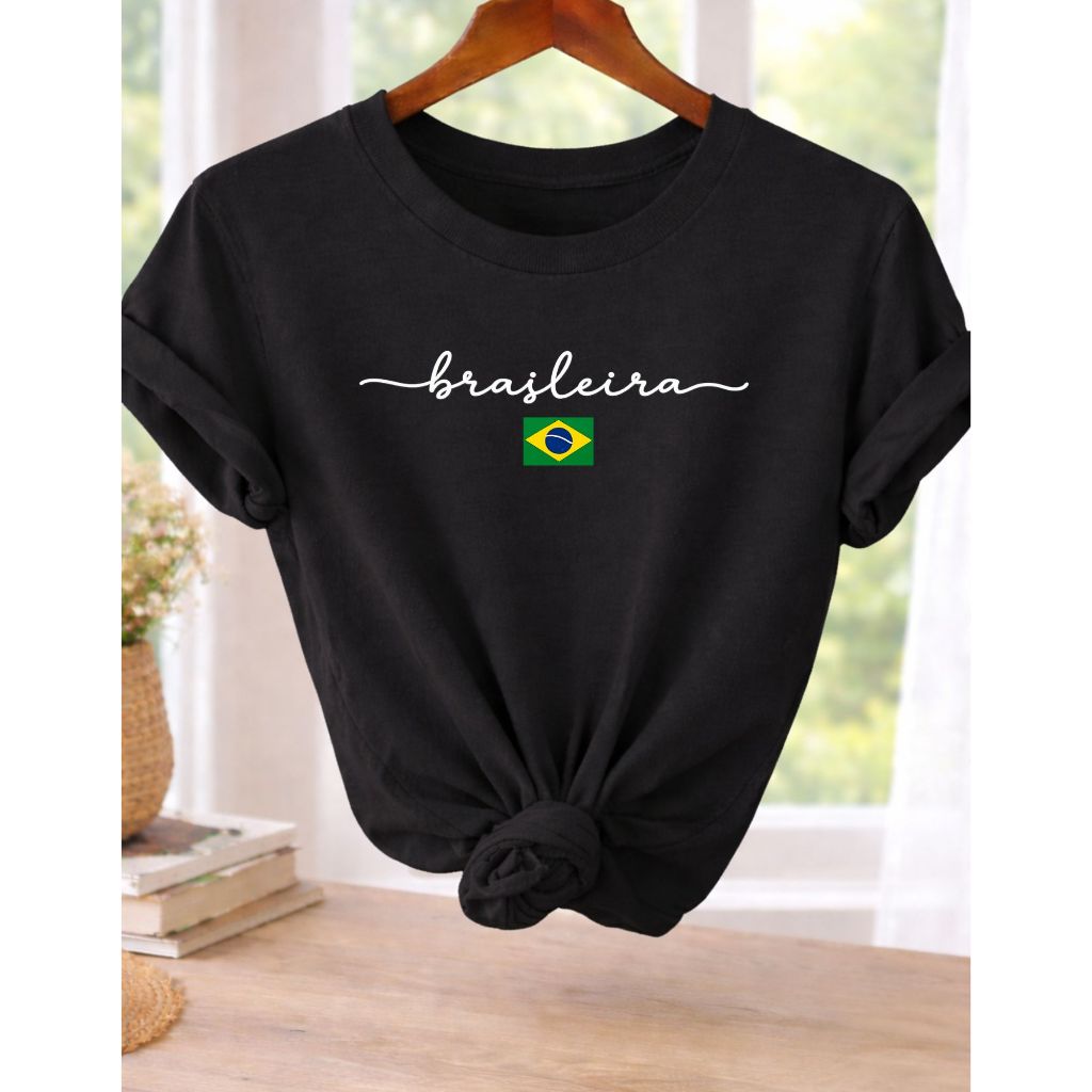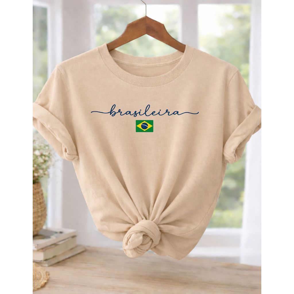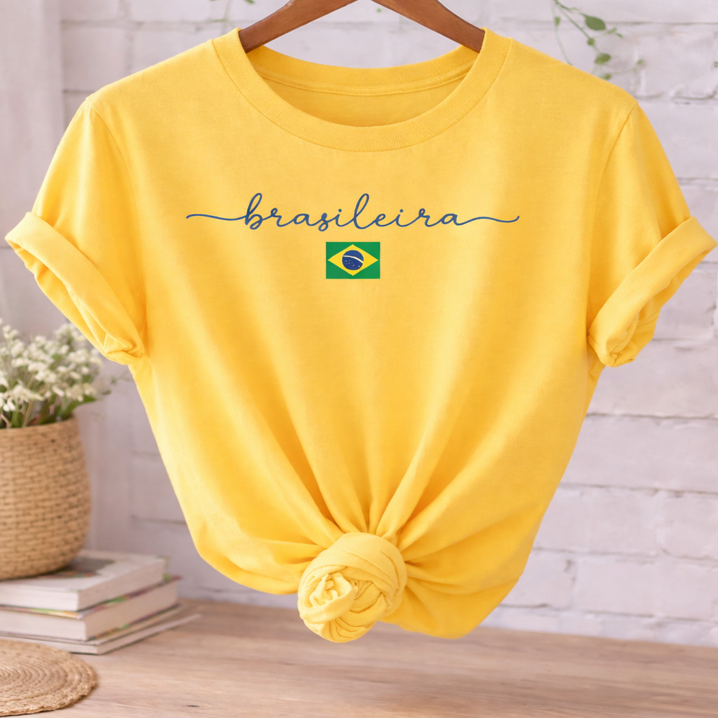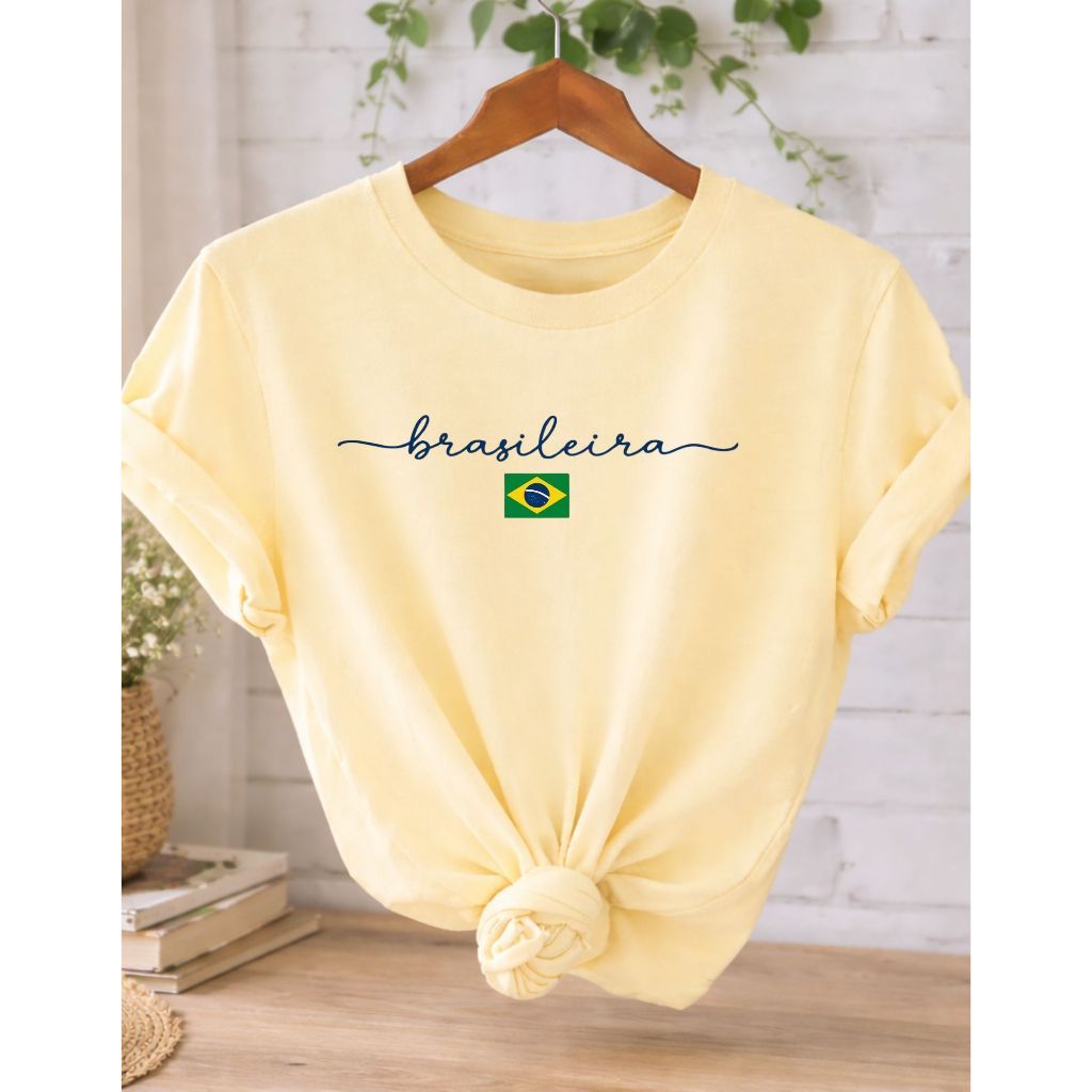 Camiseta Feminina Brasileira Amarela Estampa Brasil T-Shirt 100% Algodão Casual Copa Seleção