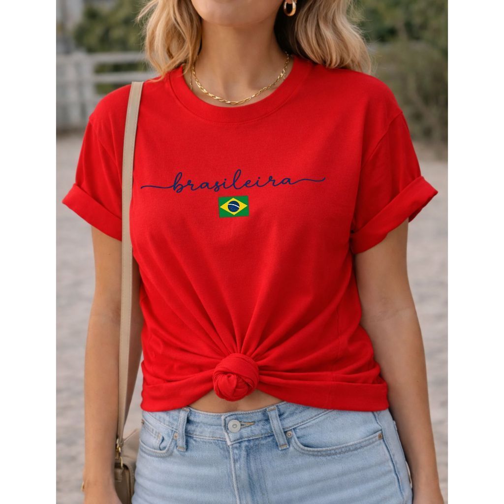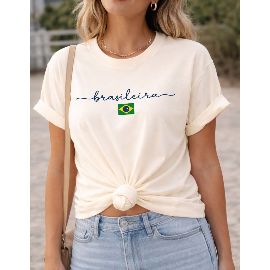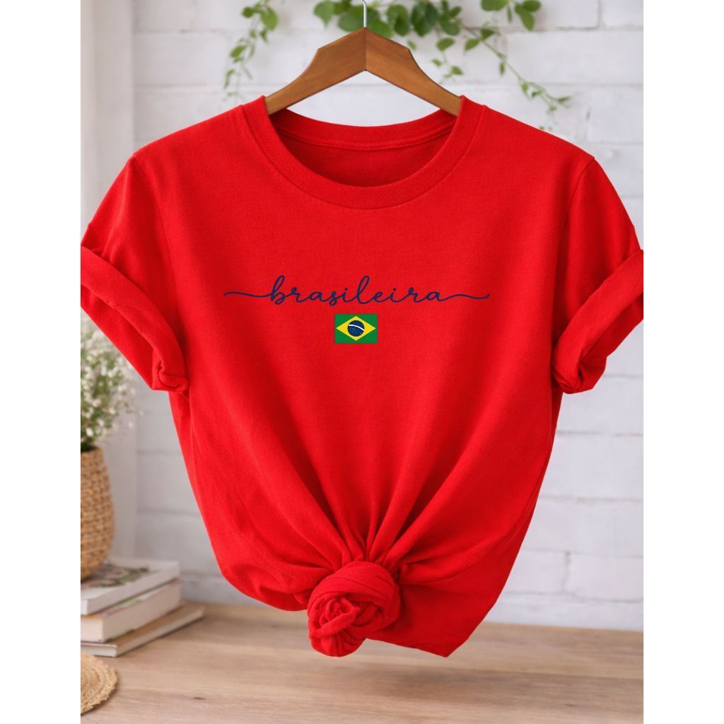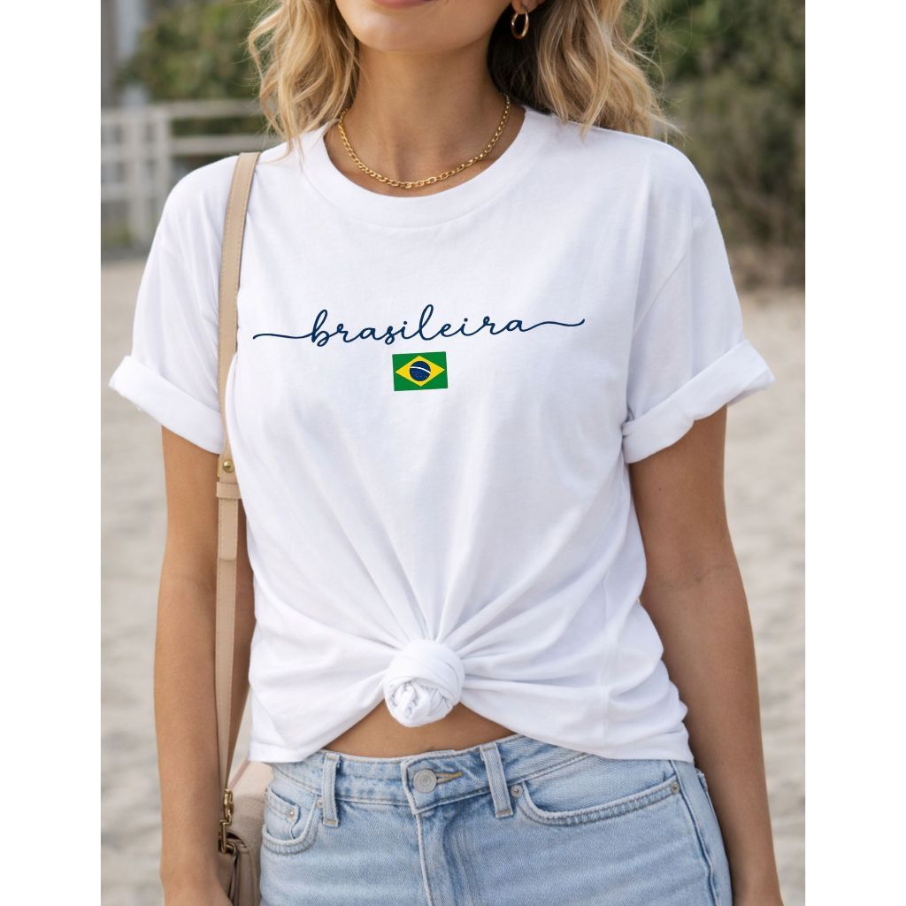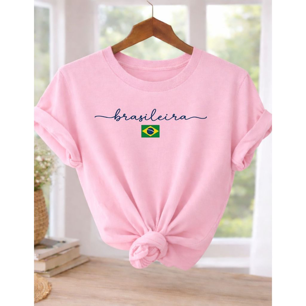 Camiseta Feminina Brasileira Amarela Estampa Brasil T-Shirt 100% Algodão Casual Copa Seleção