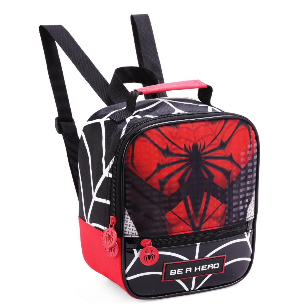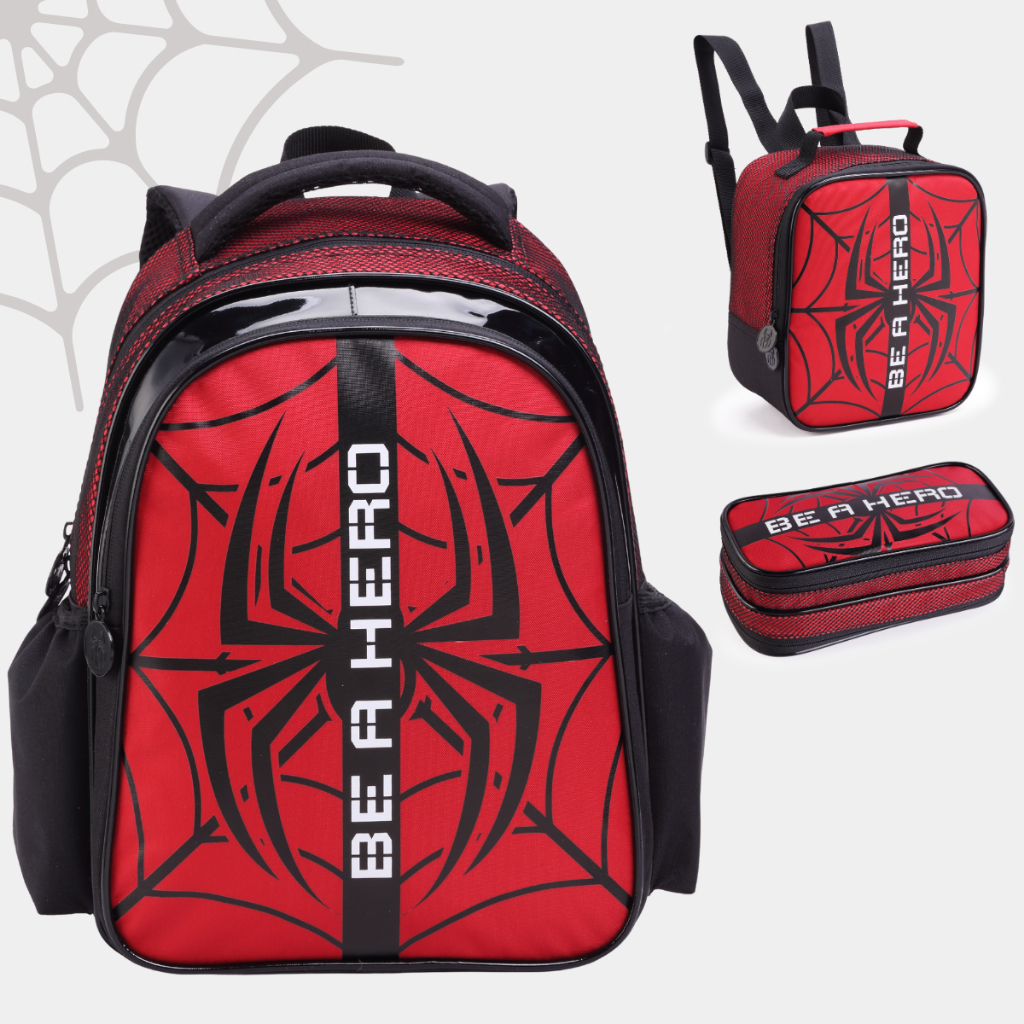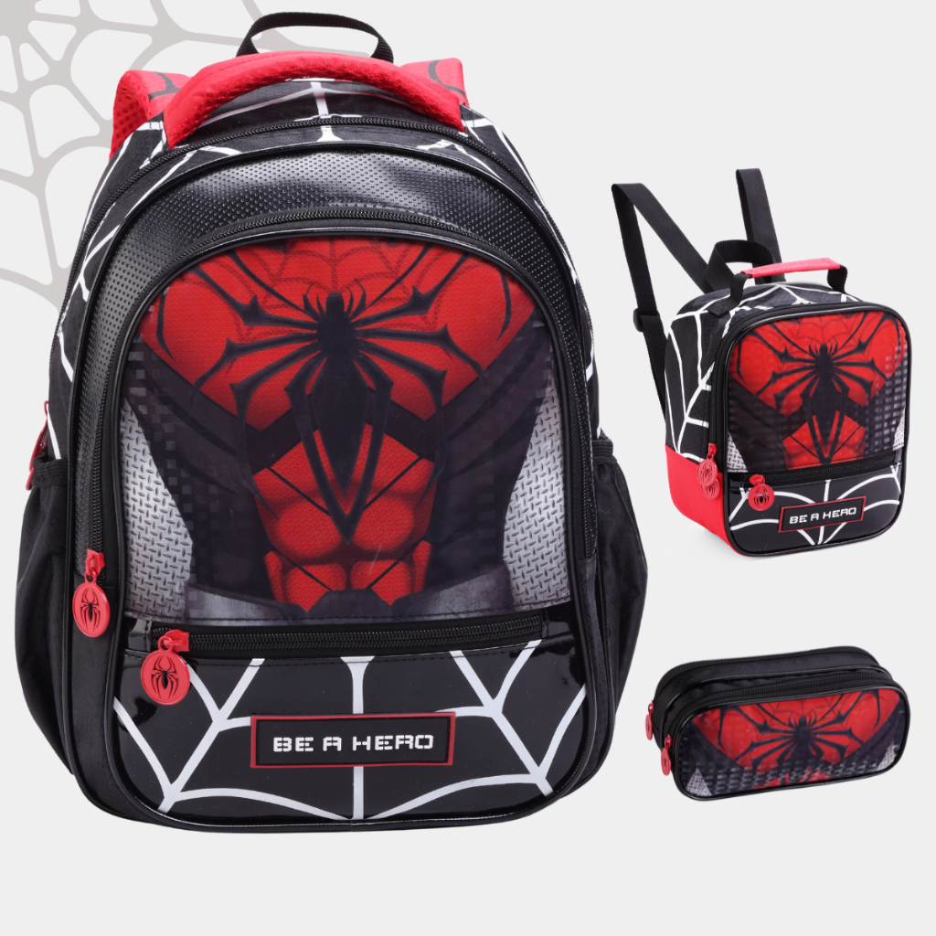 Kit Mochila Costas Grande Escolar Masculina 17l Homem Aranha Com Lancheira E Estojo Spider Hero