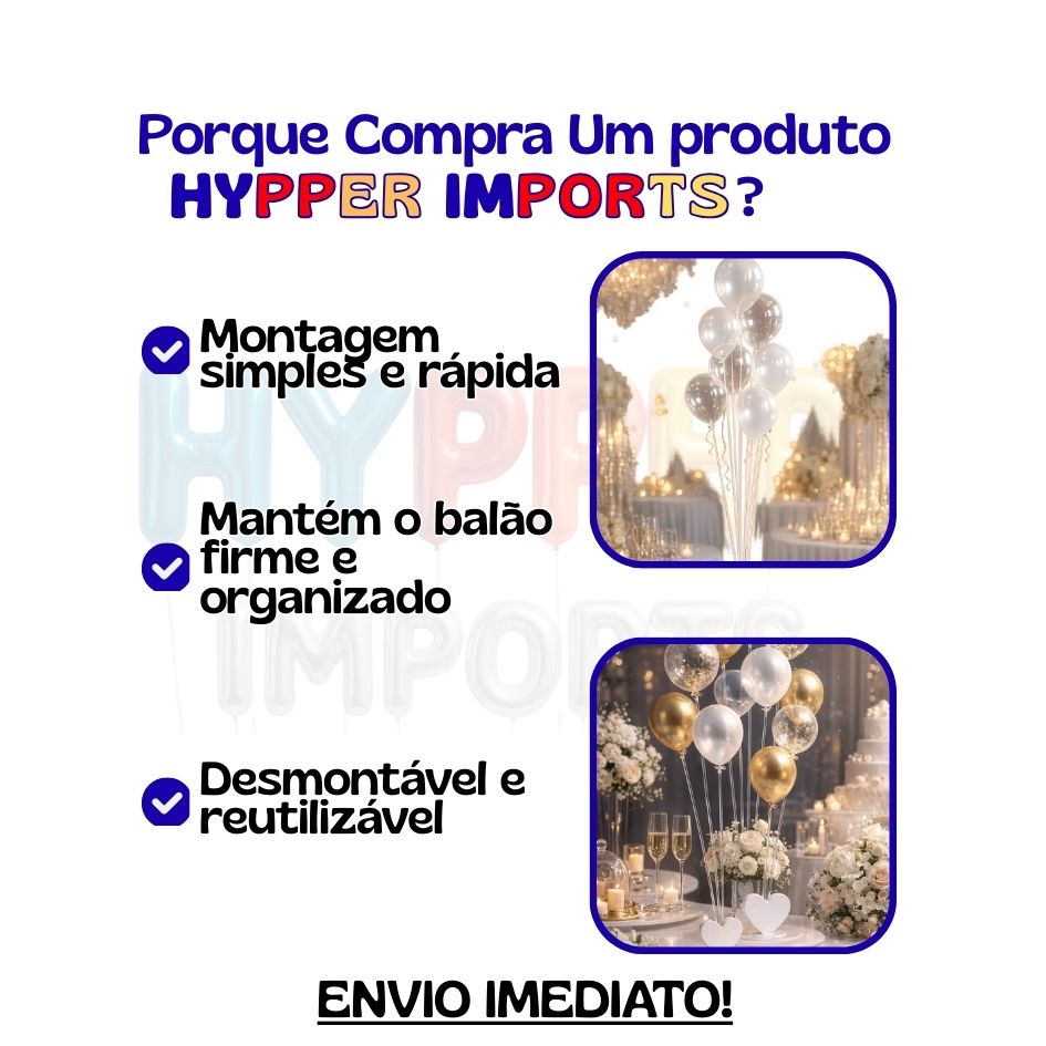 Kit 2 Suporte para Balão Acrílico 1 Metro Transparente Decoração Festa Premium