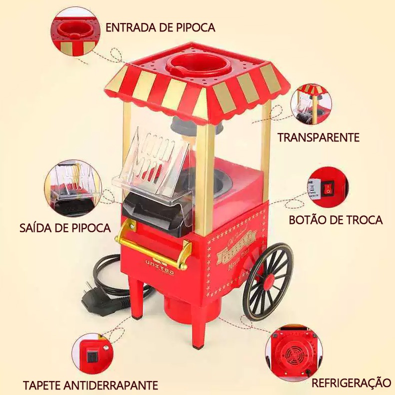 Pipoqueira Elétrica Grande Ar Quente Máquina Fazer Pipoca Sem Óleo Minijoy Festa 110/220V