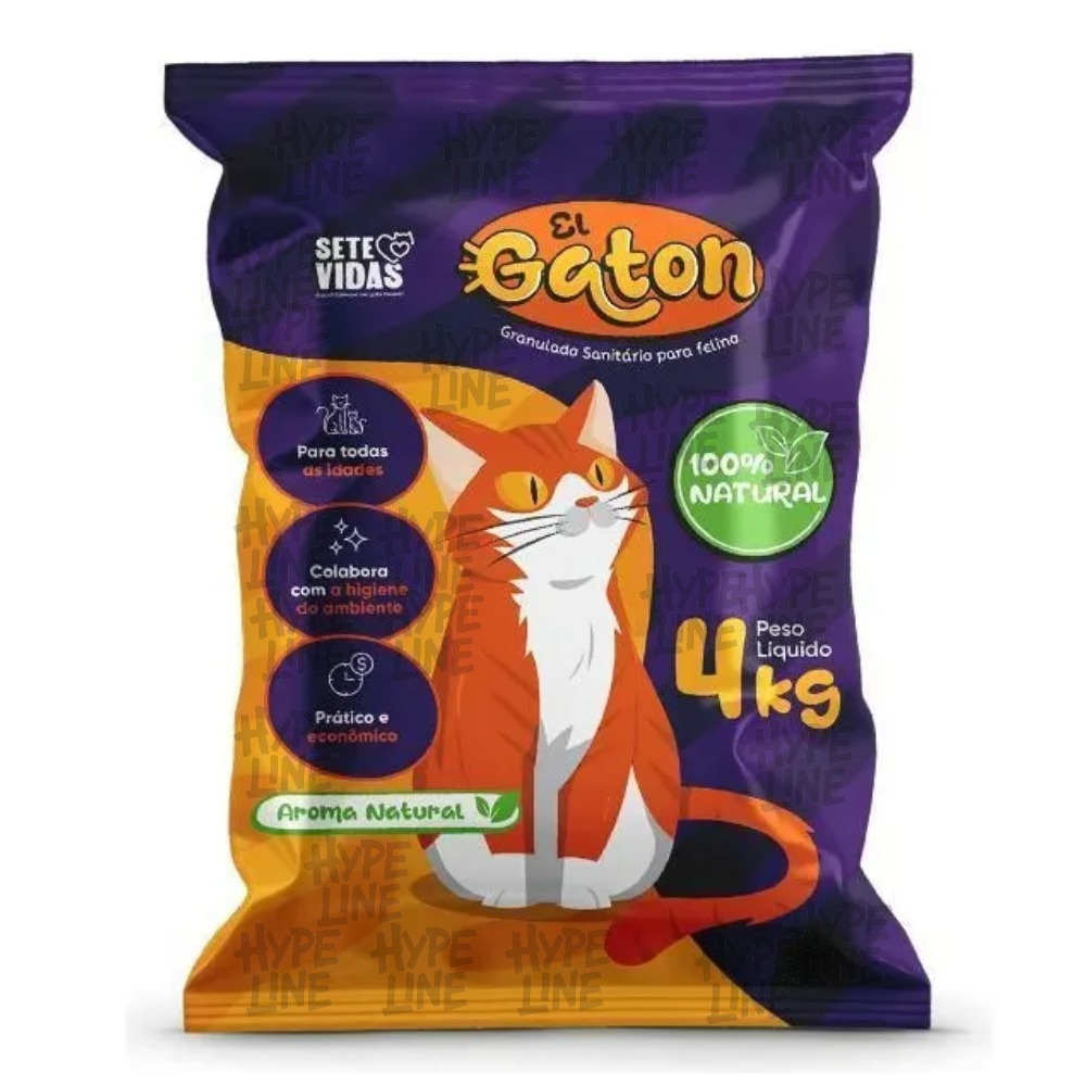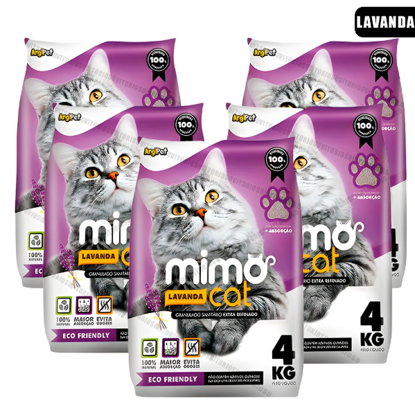 Kit Fardo 5 Pacotes de Areia Granulado Sanitário de Gato Aromatizado Absorção El Gaton Lavanda 20KG