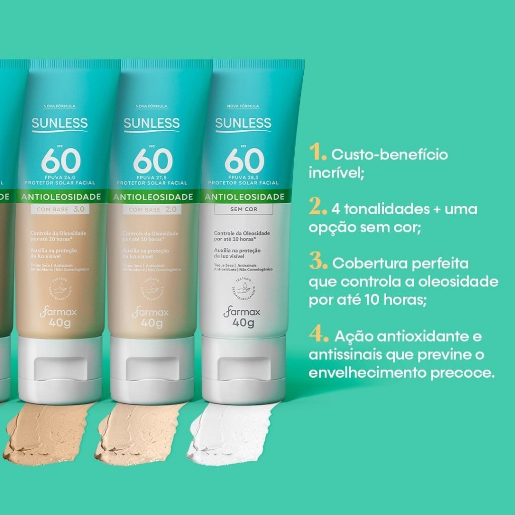 Protetor Solar Facial Antioleosidade FPS 60 com Base Efeito Matte Sunless 40g