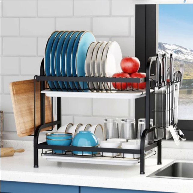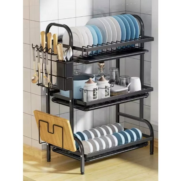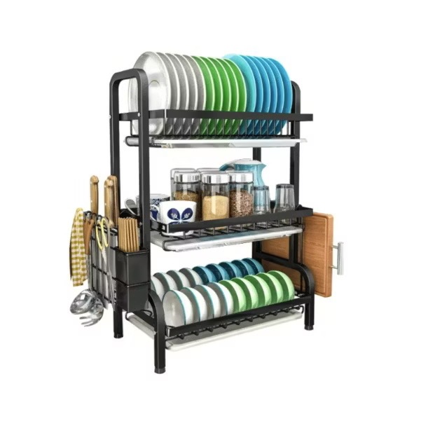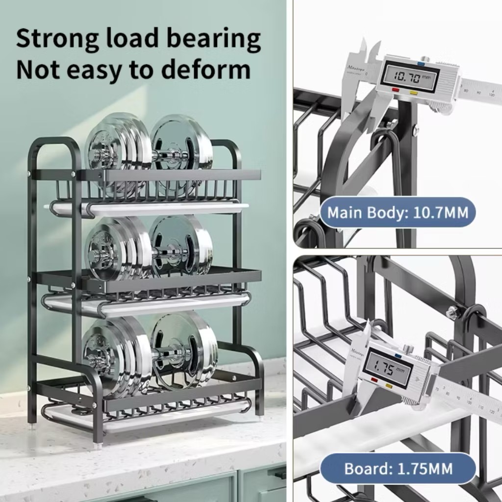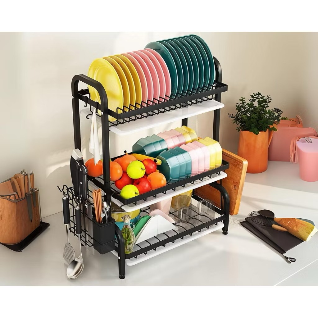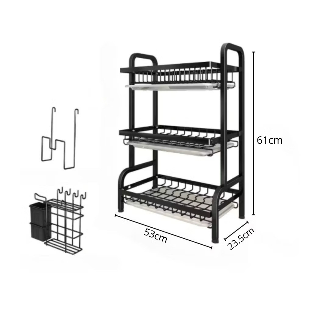 Escorredor De Louças 3 Andar Aço Inoxidável Organizador Moderno Com Porta Talher e Bandeja