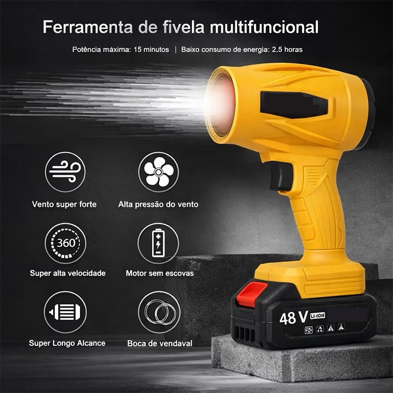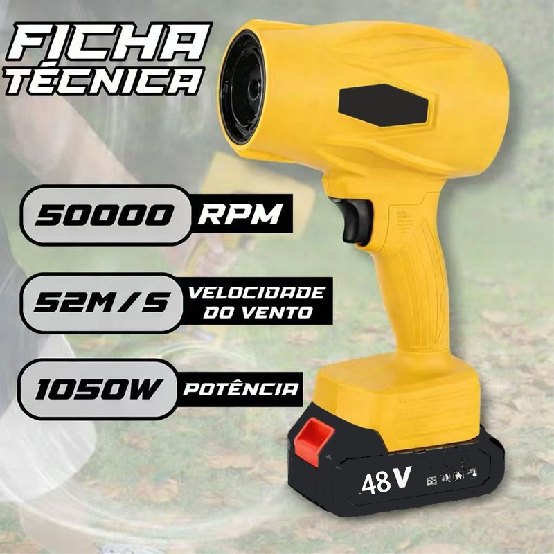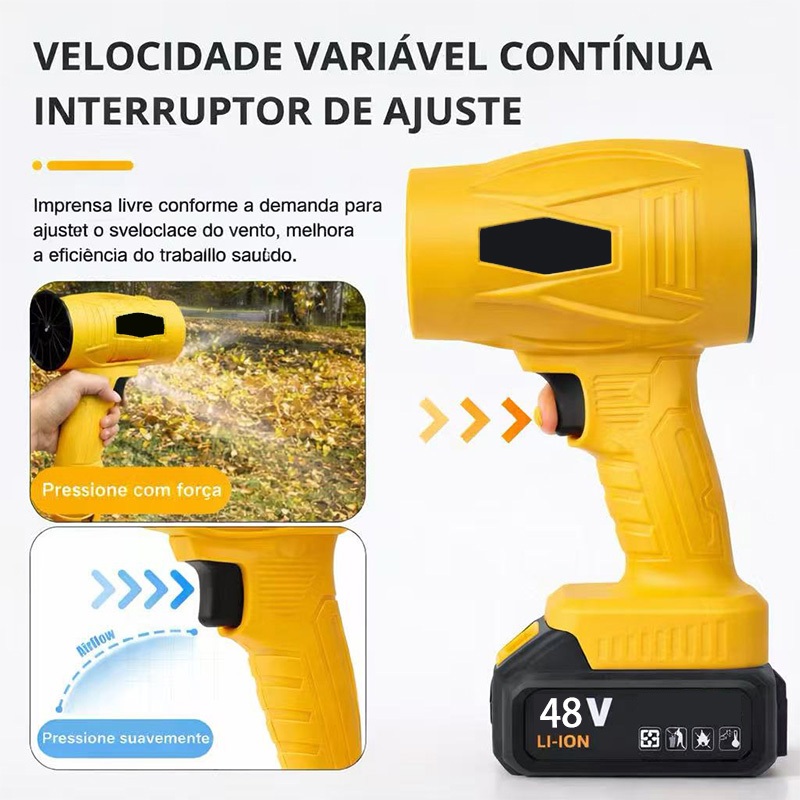 Soprador Turbo Portátil Recarregável 48v Com 1 Baterias Potente Soprador De Folhas Limpeza Geral ofh