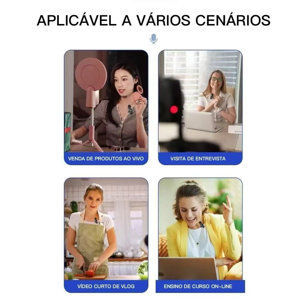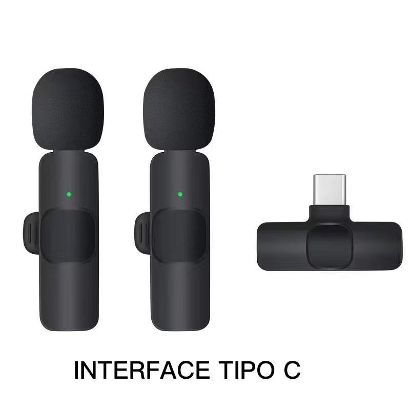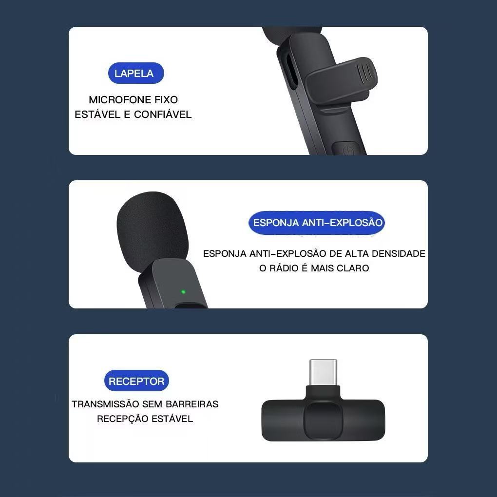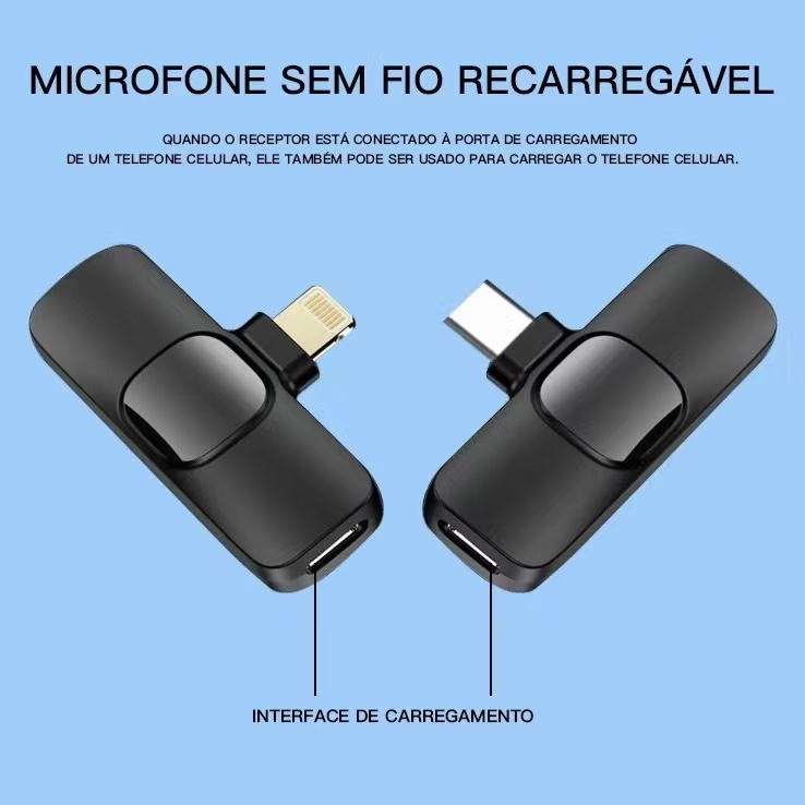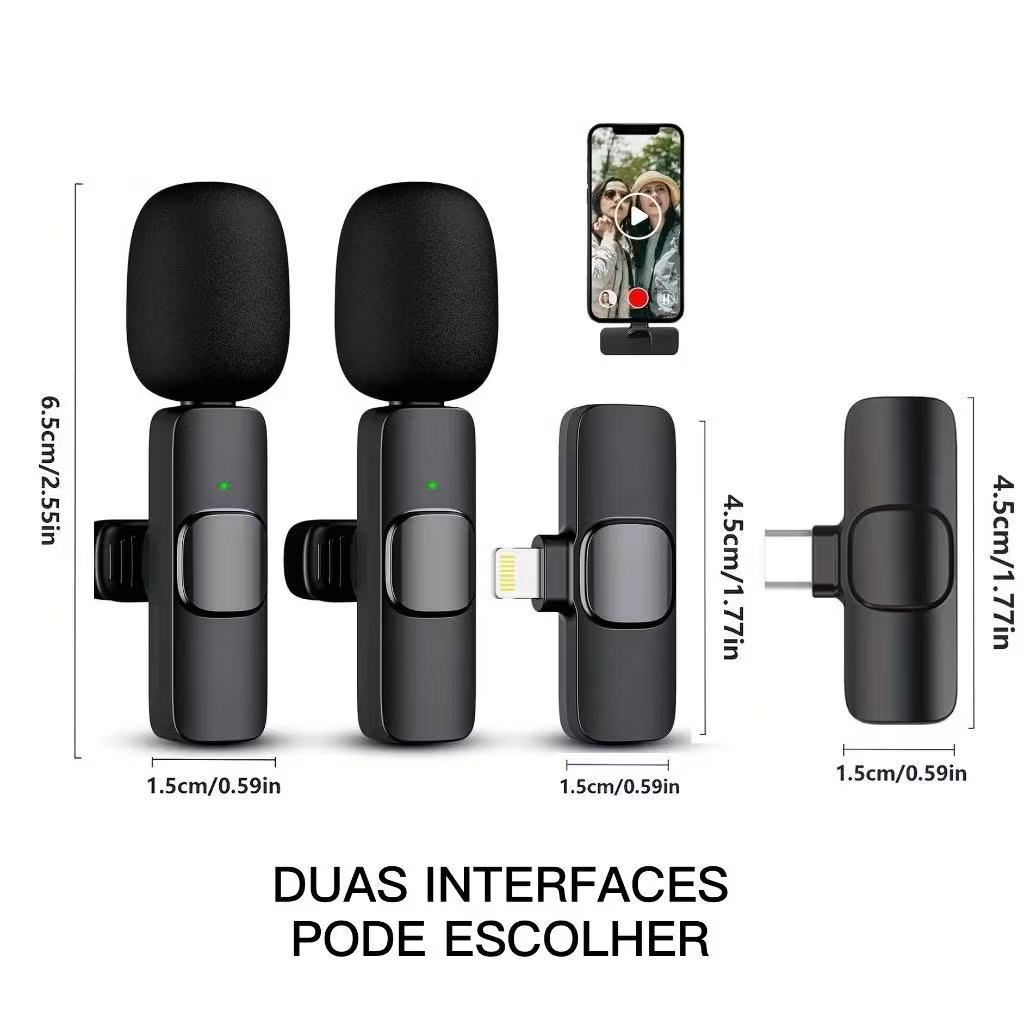 Microfone de Lapela Sem Fio Vlog Compatível Tipo C e iPhone