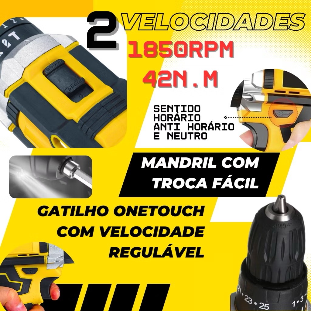Parafusadeira 48V/21V/18V Recarregável Kit Profissional Com 1 ou 2 Baterias, Maleta e Acessórios Completos