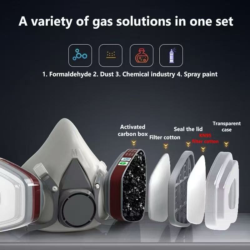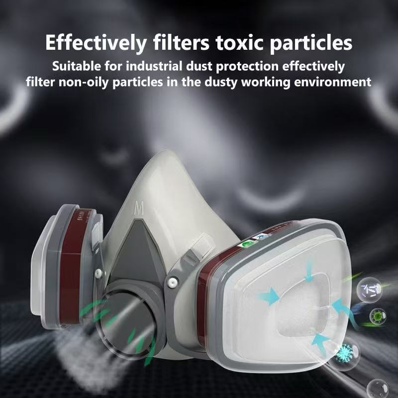 Máscara de proteção industrial contra poeira, equipada com filtro de carvão ativado