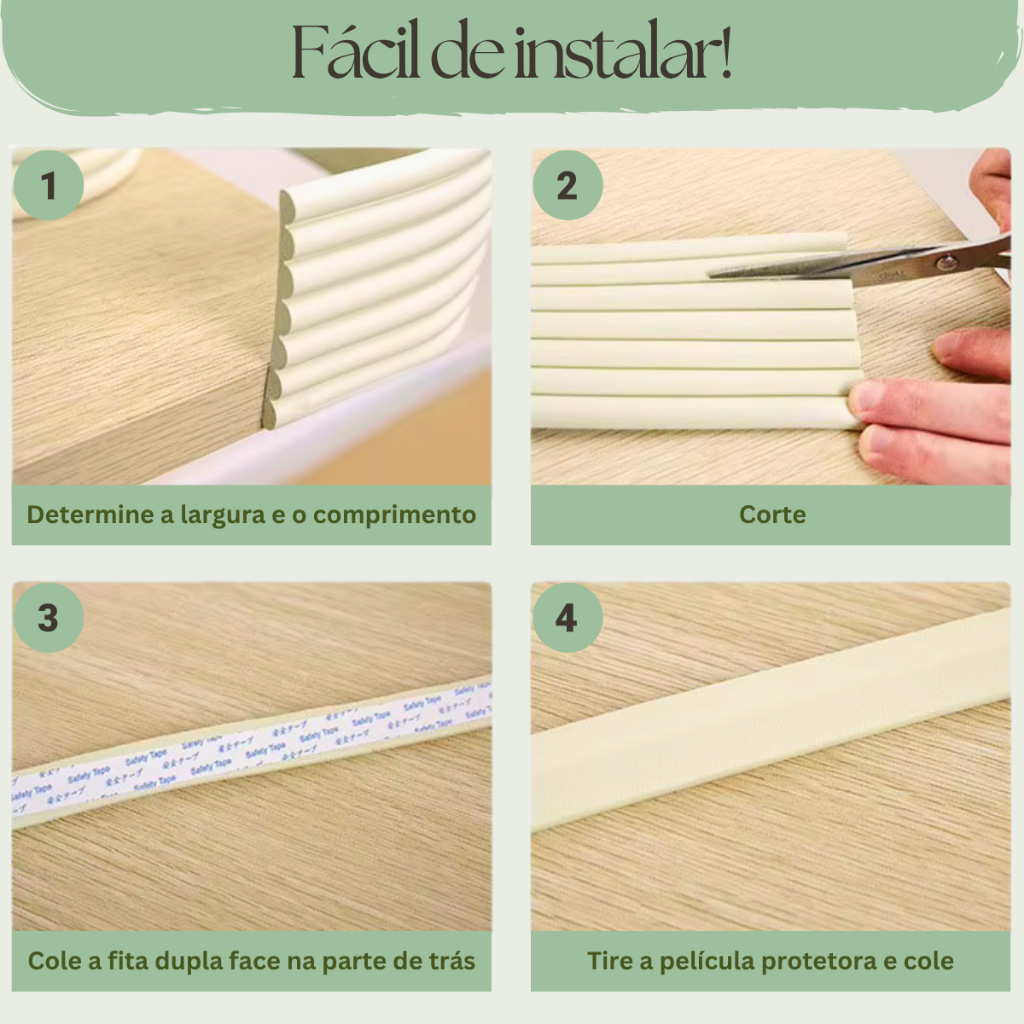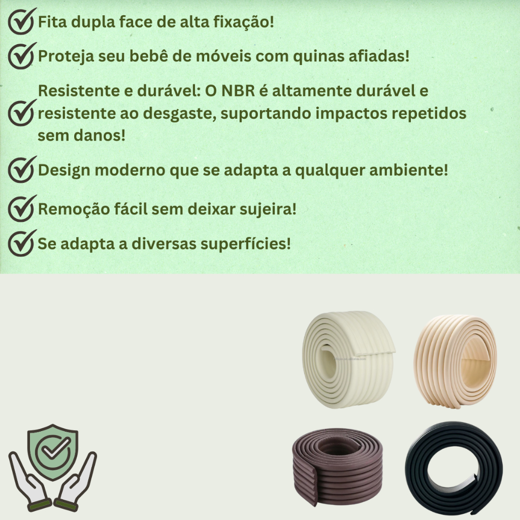 Protetor de Quina Borda e Canto Afiado Proteção Bebê Rolo 2M Flexível com Fita Dupla Face Cantoneira