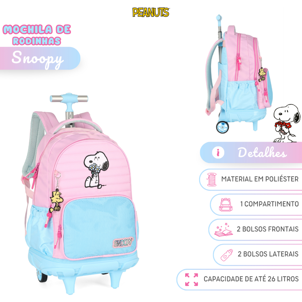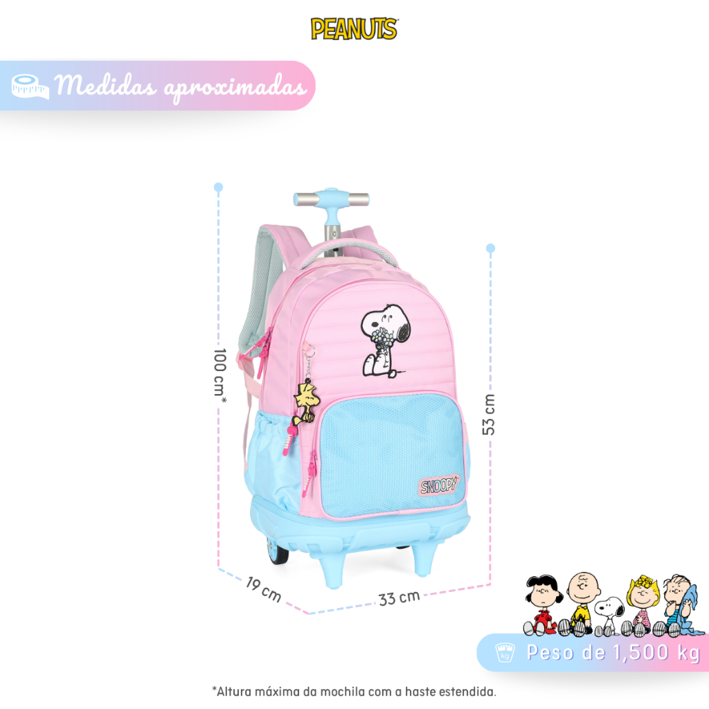 Mochila De Rodinhas Escolar Do Snoopy Peanuts Juvenil Luxcel