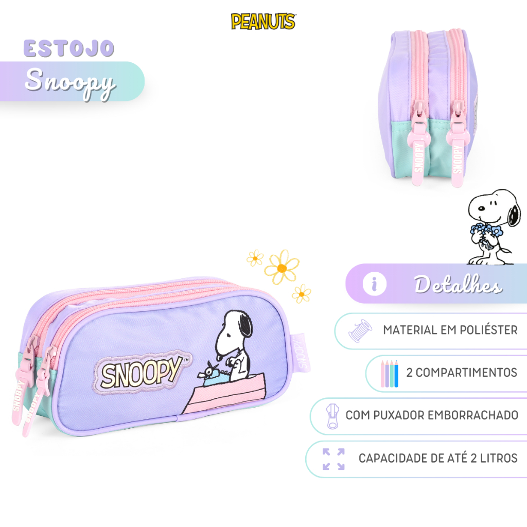 Estojo Escolar Duplo Snoopy Peanuts Juvenil Original Luxcel
