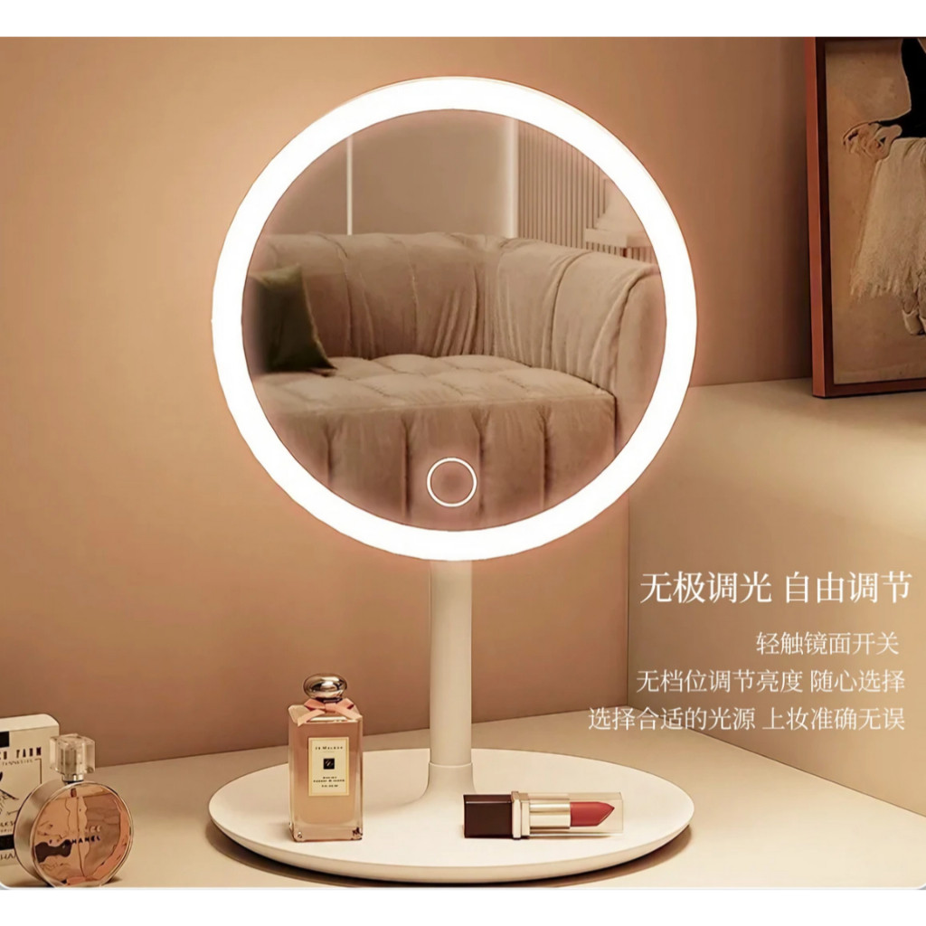 Espelho de Mesa Maquiagem LED 24 Leds Touch Recarregável USB 3 Tons Luz Camarim