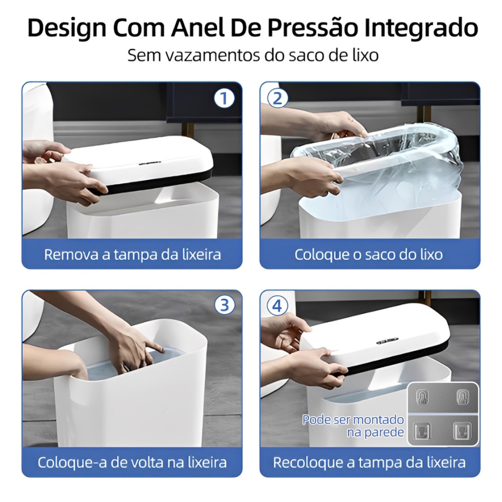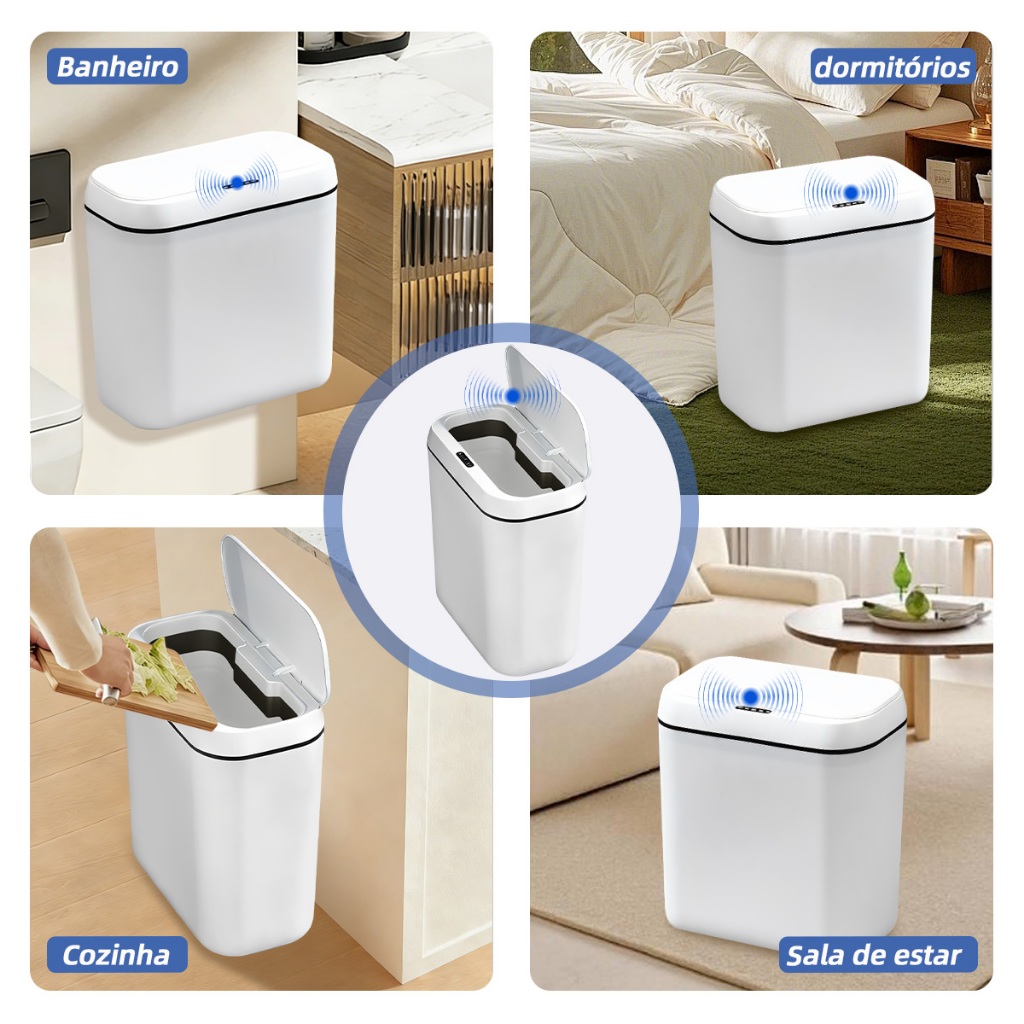 Lixeira Inteligente Automática Sensor 15L Banheiro Cozinha Anti Odor 4 Modos Abertura Escritório Lixo