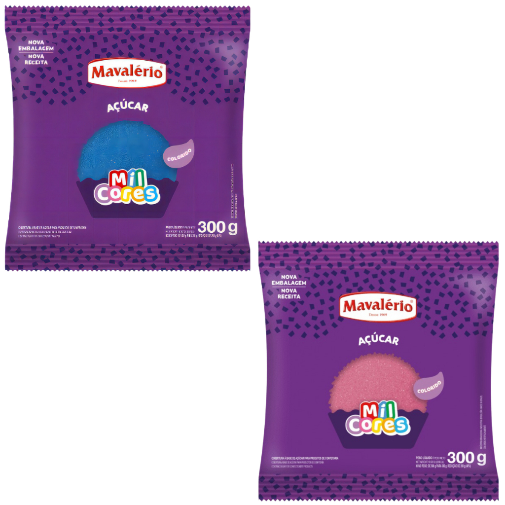 Açúcar Rosa ou Azul Colorido Mil Cores Sobremesas - 300g - Mavalério