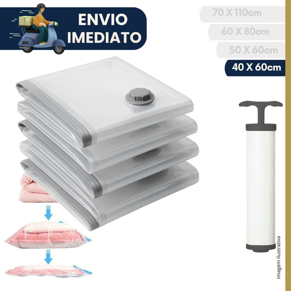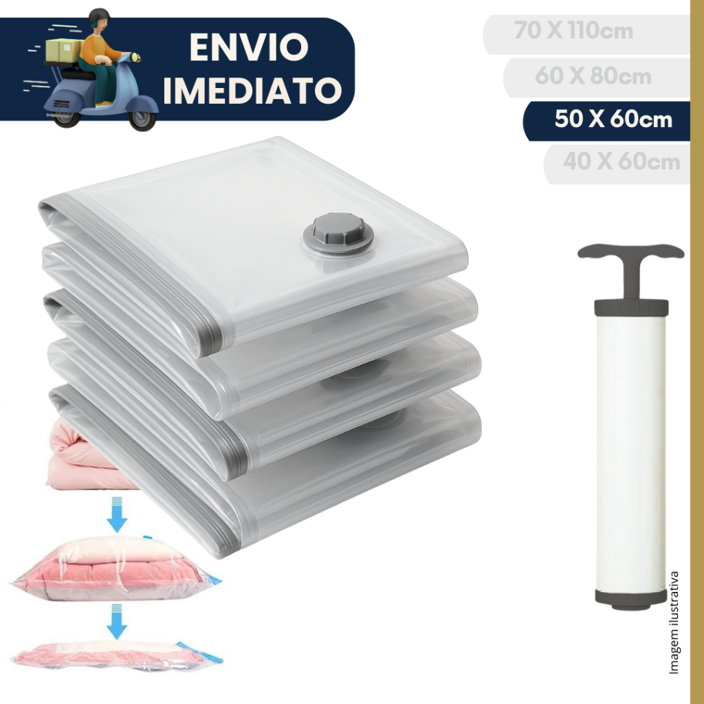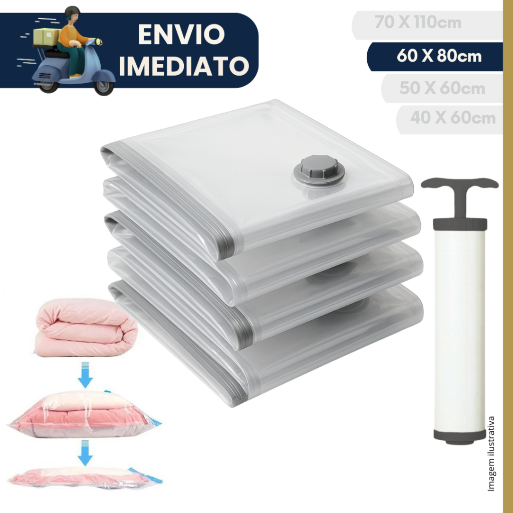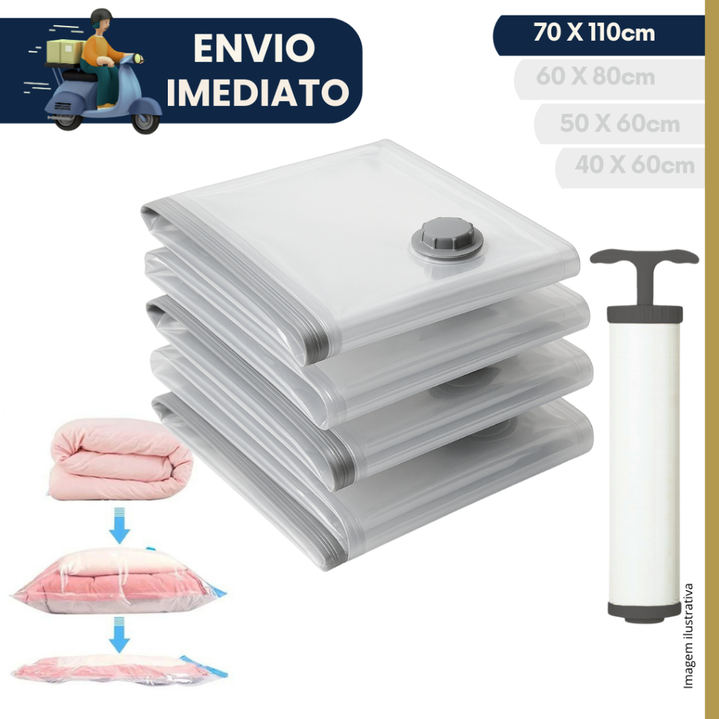 Kit 5 unidades Saco a Vacuo Organização de Roupas Mala Viagem Guarda Roupa