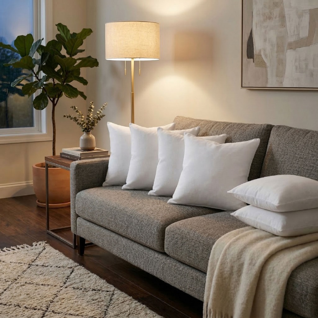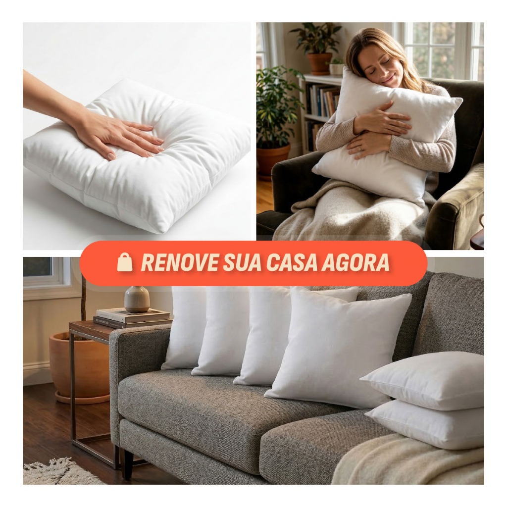 Kit 4 Refil de Almodada 50x50, 100% Fibra Siliconada, Super Cheio e Macio. Salas e Decorações