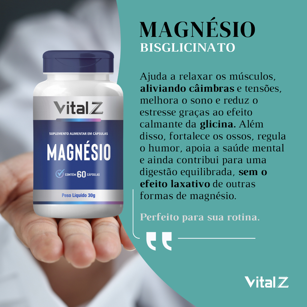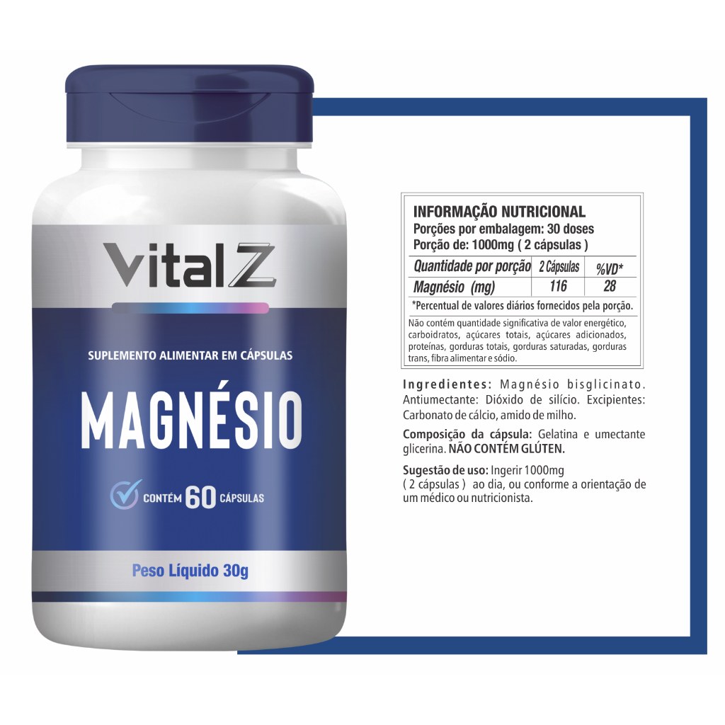 Magnésio Bisglicinato Vital Z | Suplemento Alimentar 60 Cápsulas