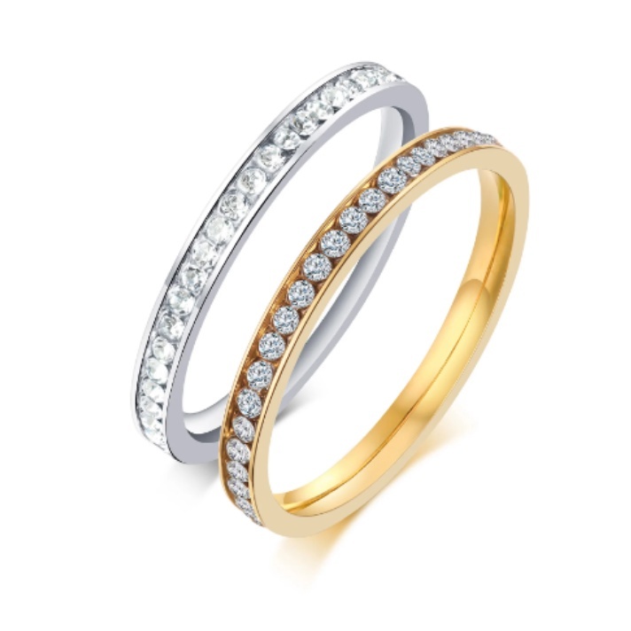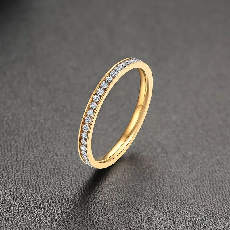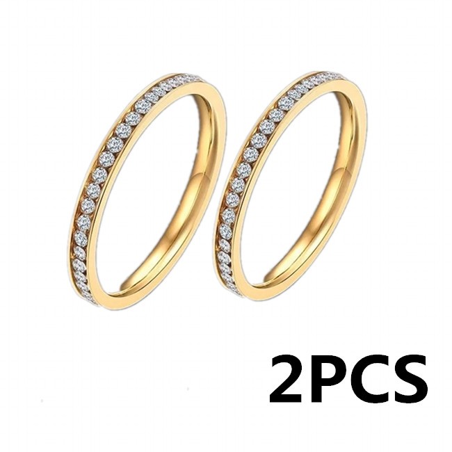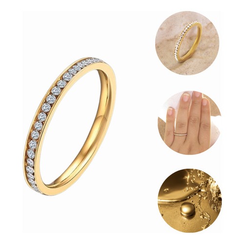 Anel Aparador de Aliança Anel Solitário Dourado ou Prata Aço Inoxidavel Cravejado 2mm Hipoalergênico