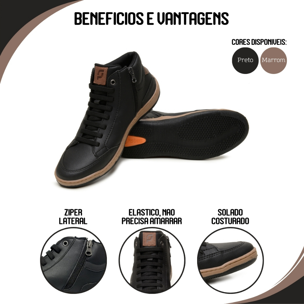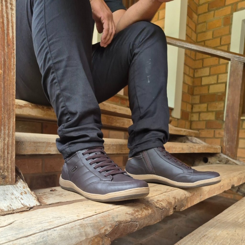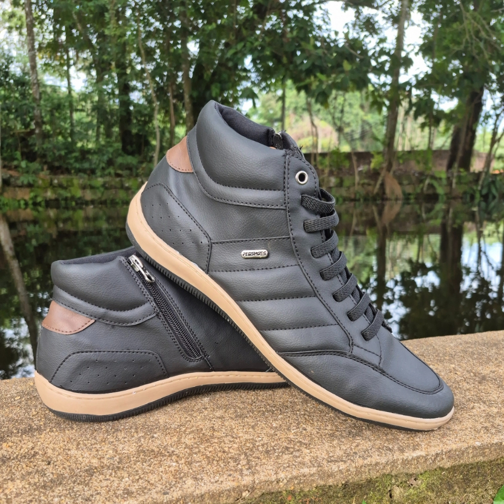 Sapatenis Casual Masculino Cano Alto Ziper Elástico Bertinazzi + Carteira Elegante