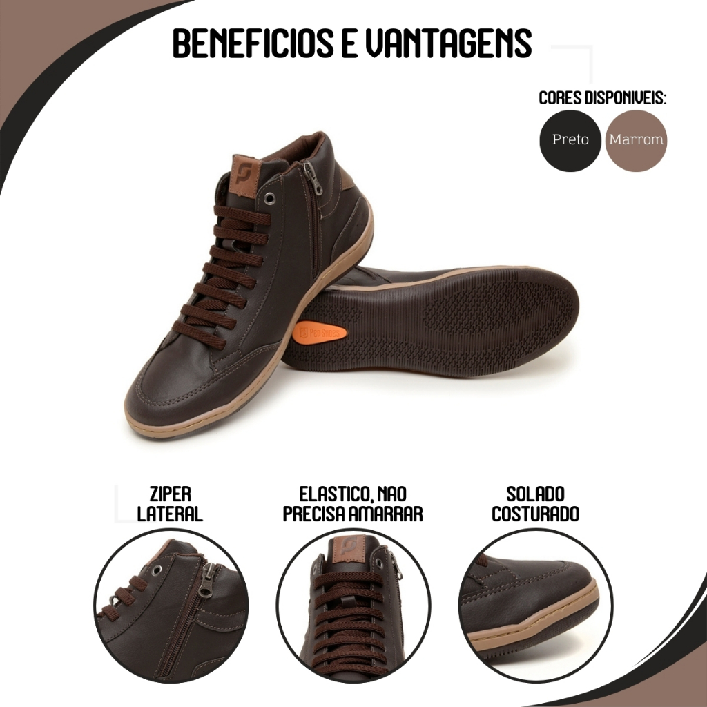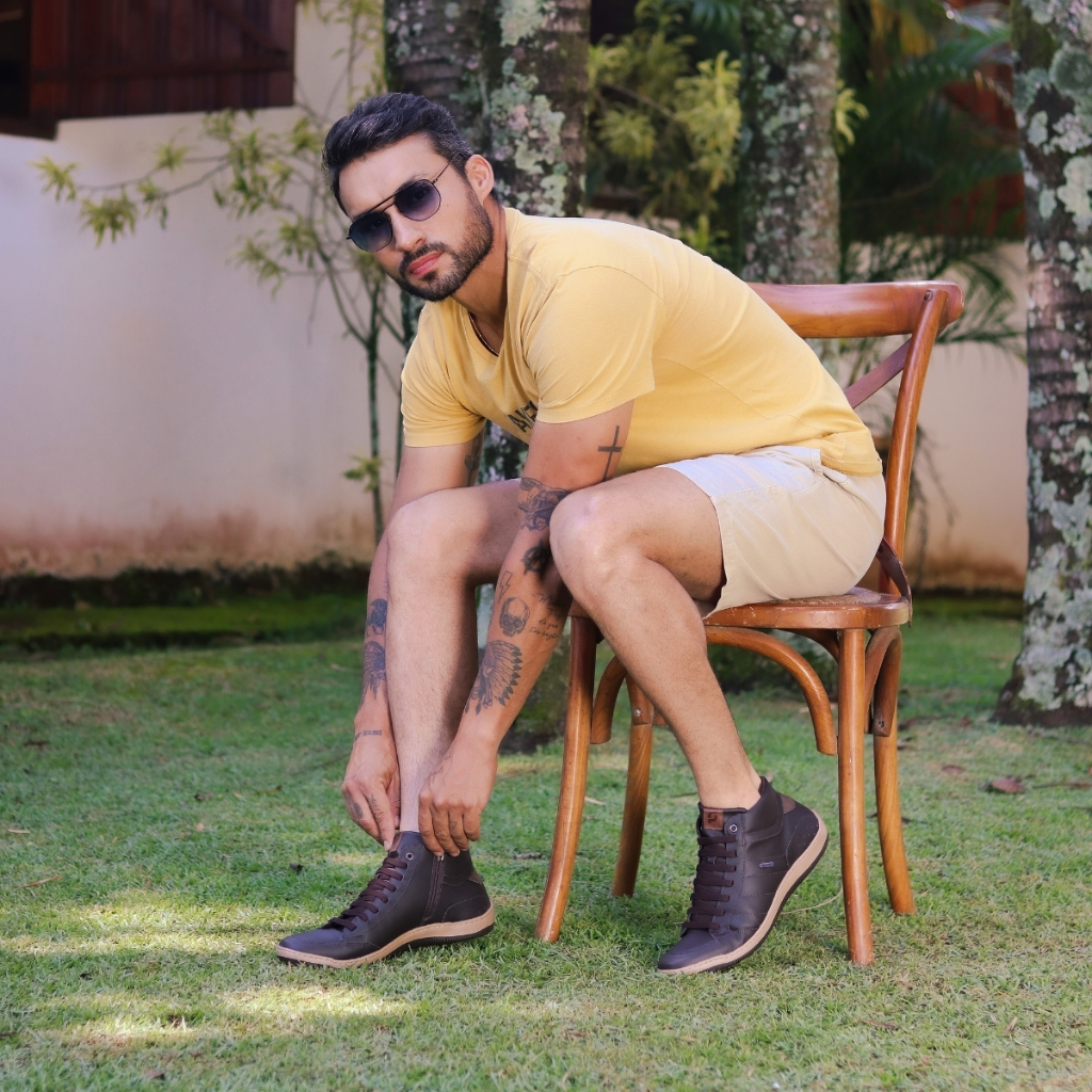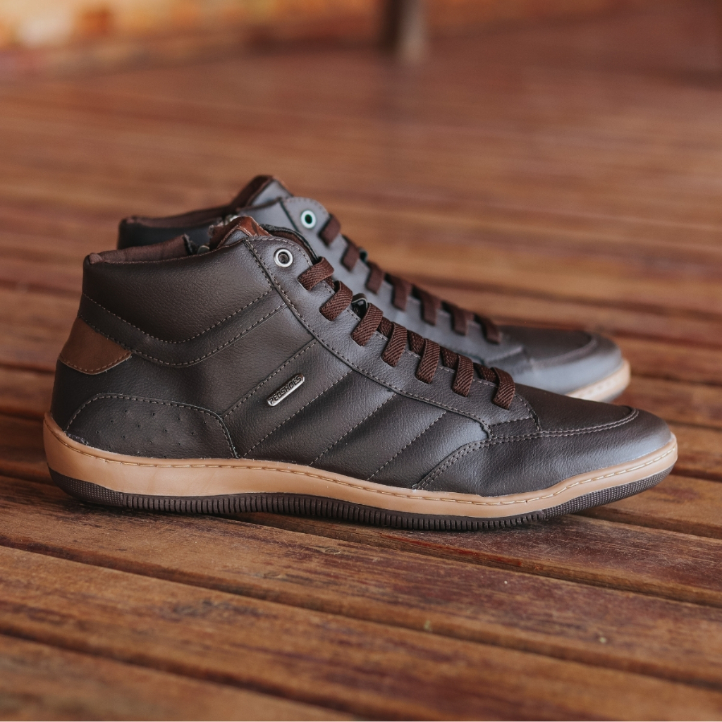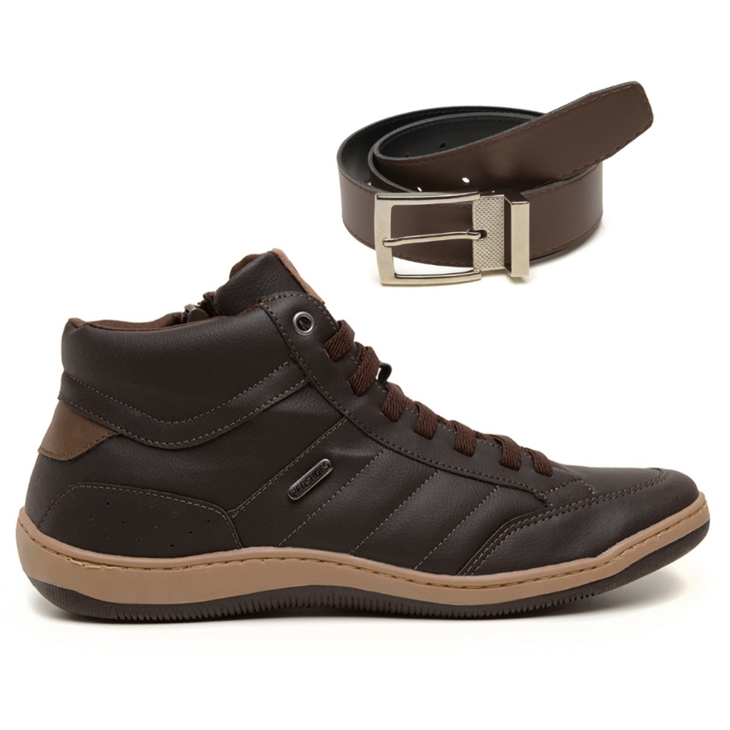 Kit Sapatenis Masculino Cano Alto Tenis Casual Sintético + Cinto Dupla Face