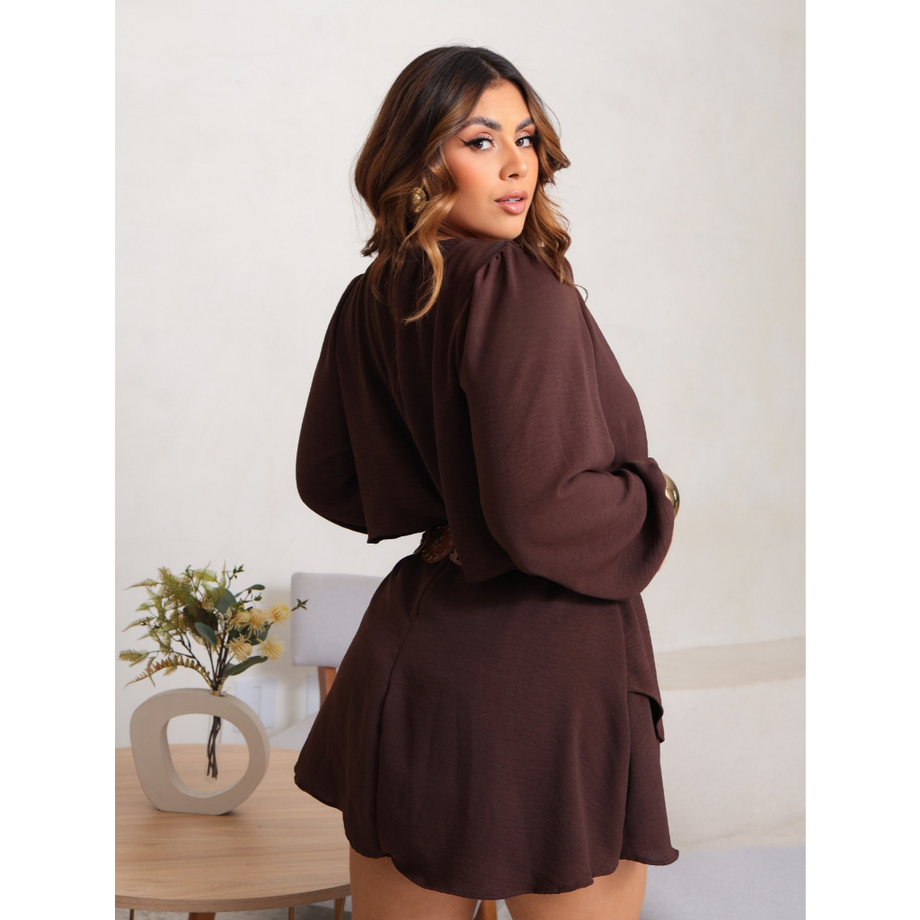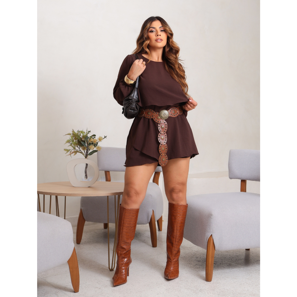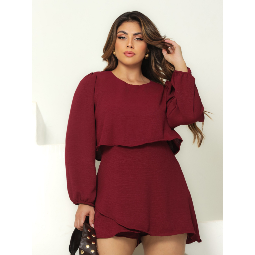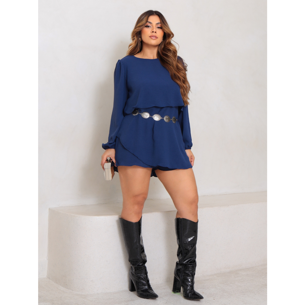 Macaquinho Feminino Manga Longa Com Camadas Duna Soltinho