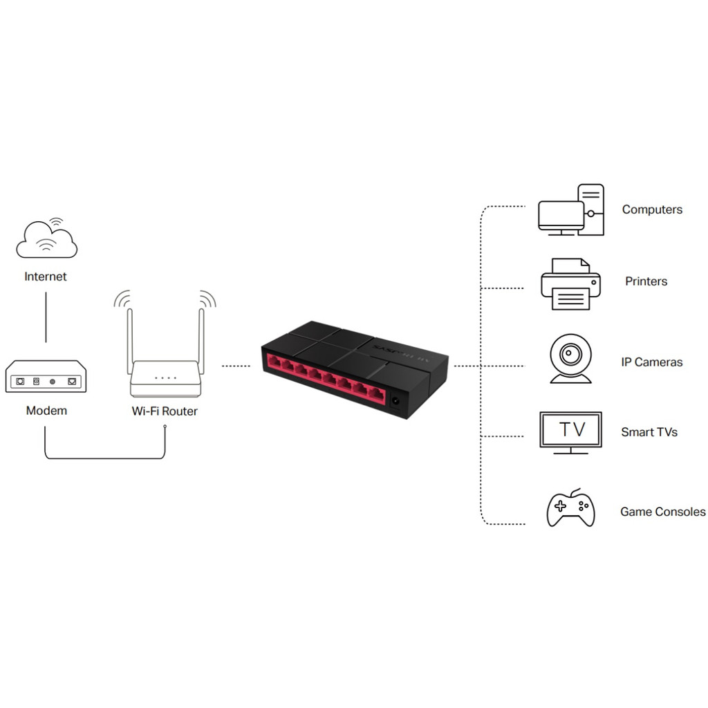 Hub Switch Rede 8 Portas Mercusys MS108G 10/100/1000 Gigabit