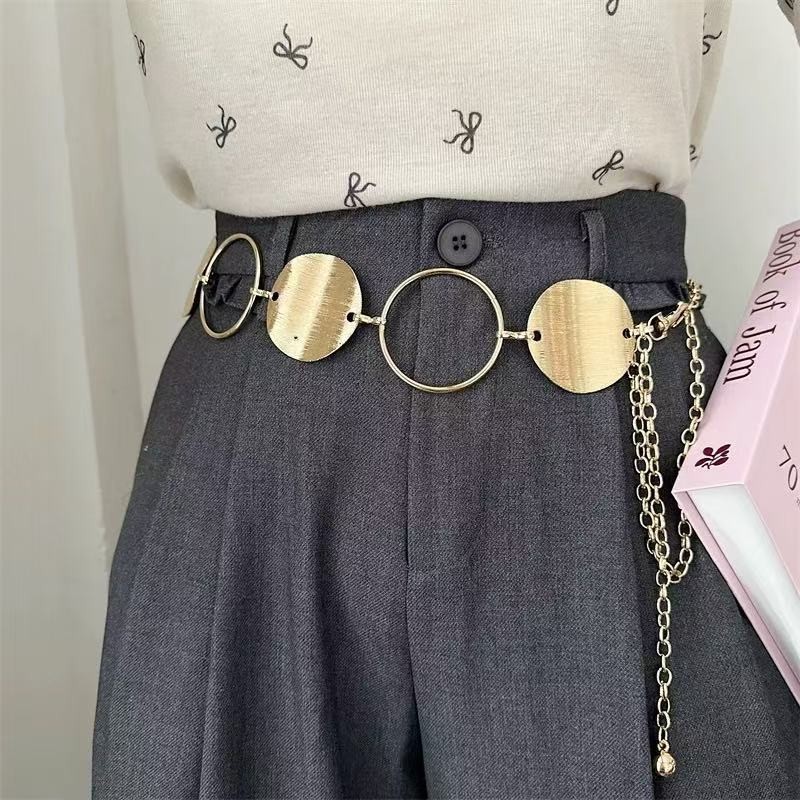 Corrente de cintura de metal com emenda de anel geométrico personalizado