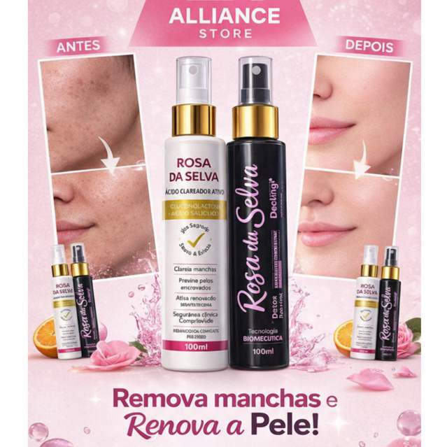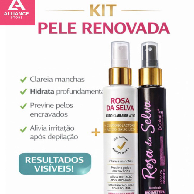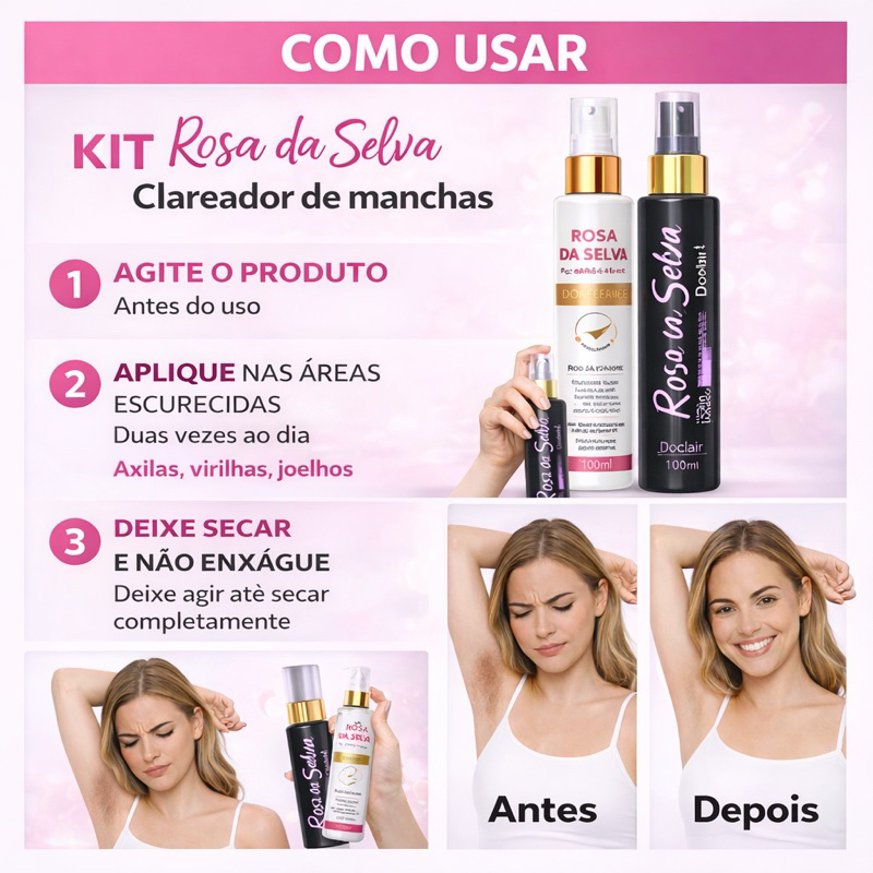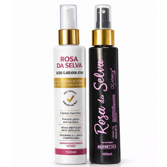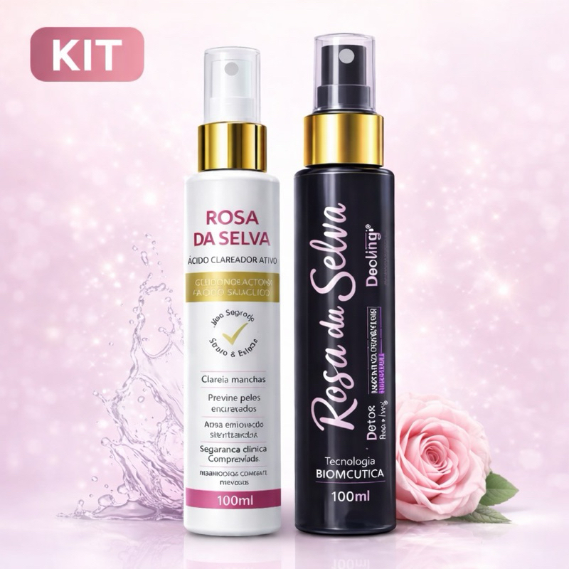 Kit Rosa da Selva Ácido Clareador + Óleo Rosa da Selva 100ml – Clareia Axilas e Cotovelos, Remove Manchas