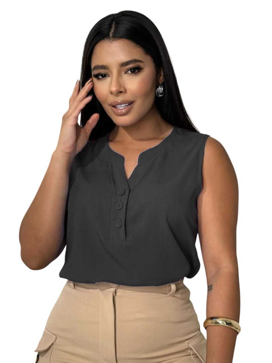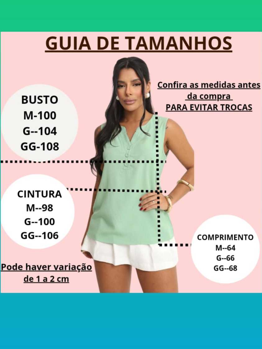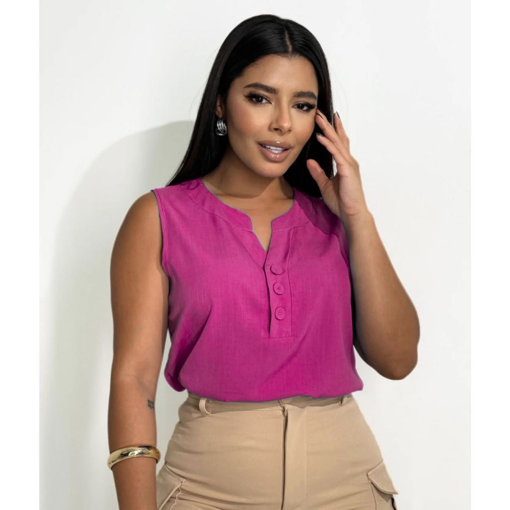 Blusa Regata Feminina Viscolinho Confortável -- M G GG - Decote V com Botões Encapados - Moda Verão