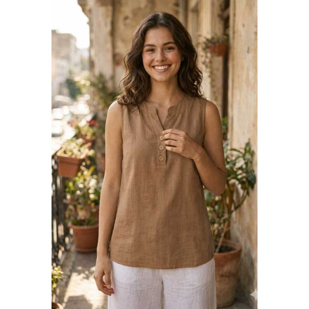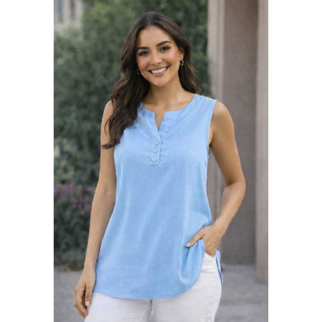 Regata Feminina Viscolinho Botões no Decote Soltinha Elegante Verão Casual Confortável