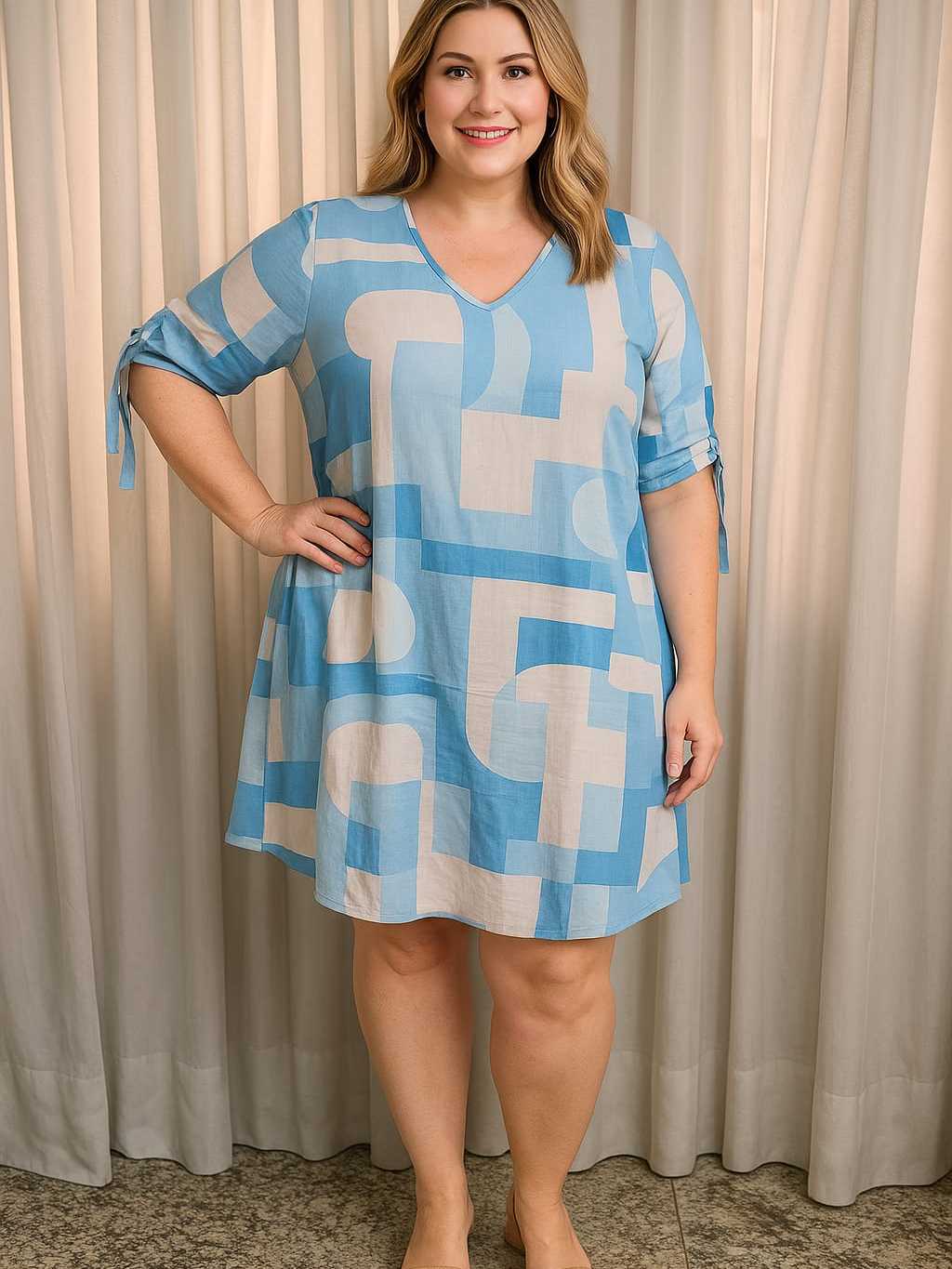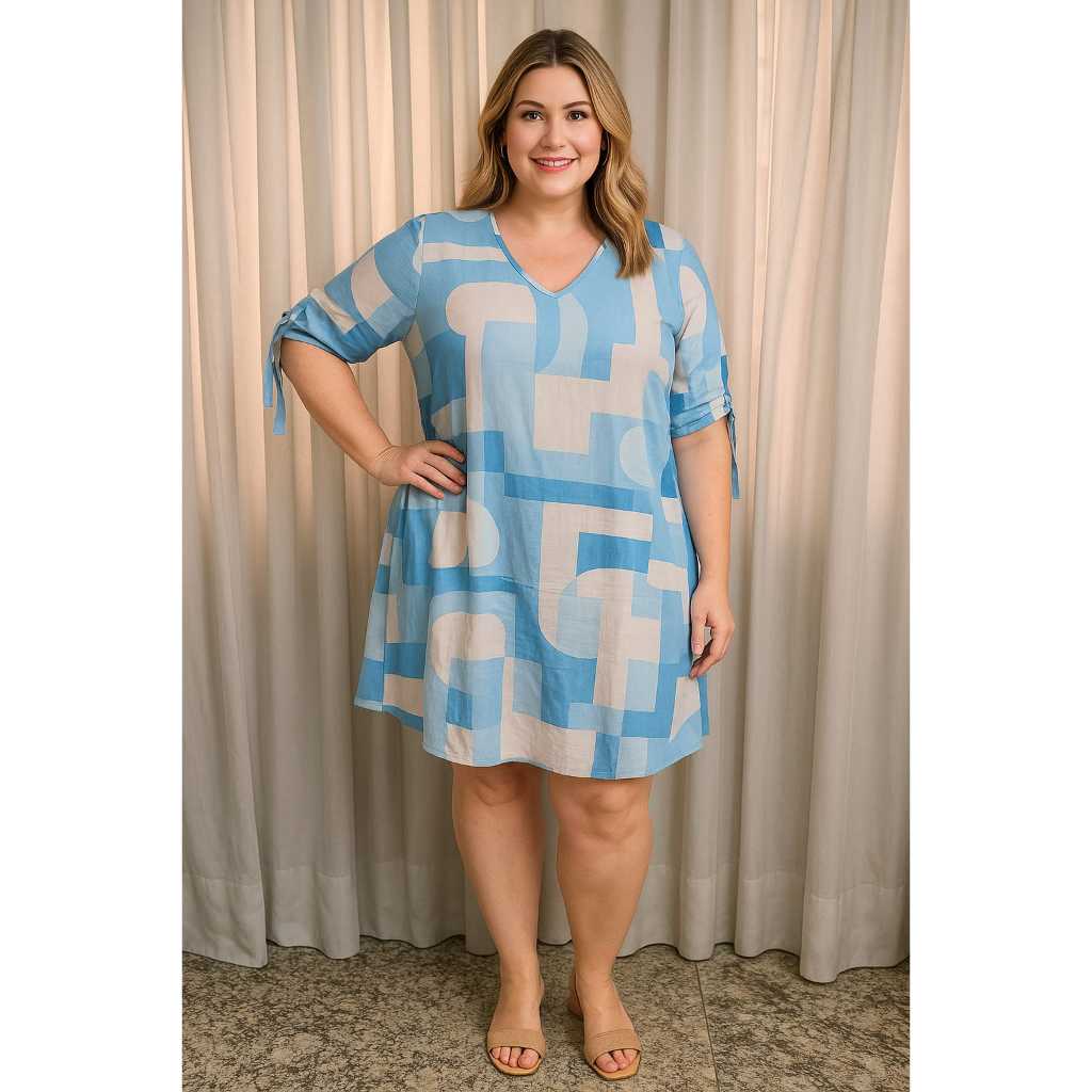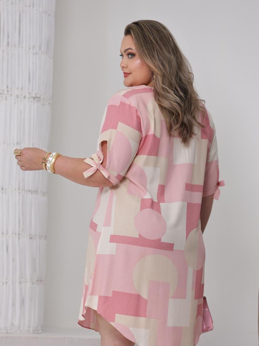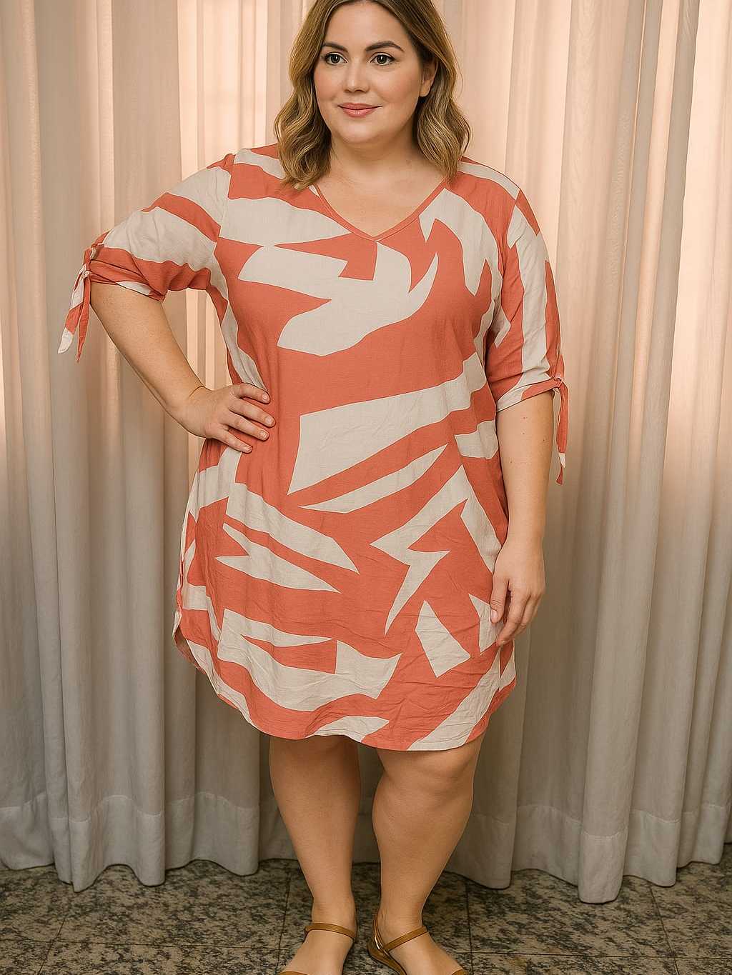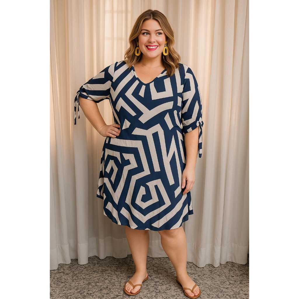 Vestido Feminino Plus Size Viscolinho Com Amarração Na Manga Elegante Social Soltinho Envio Imediato