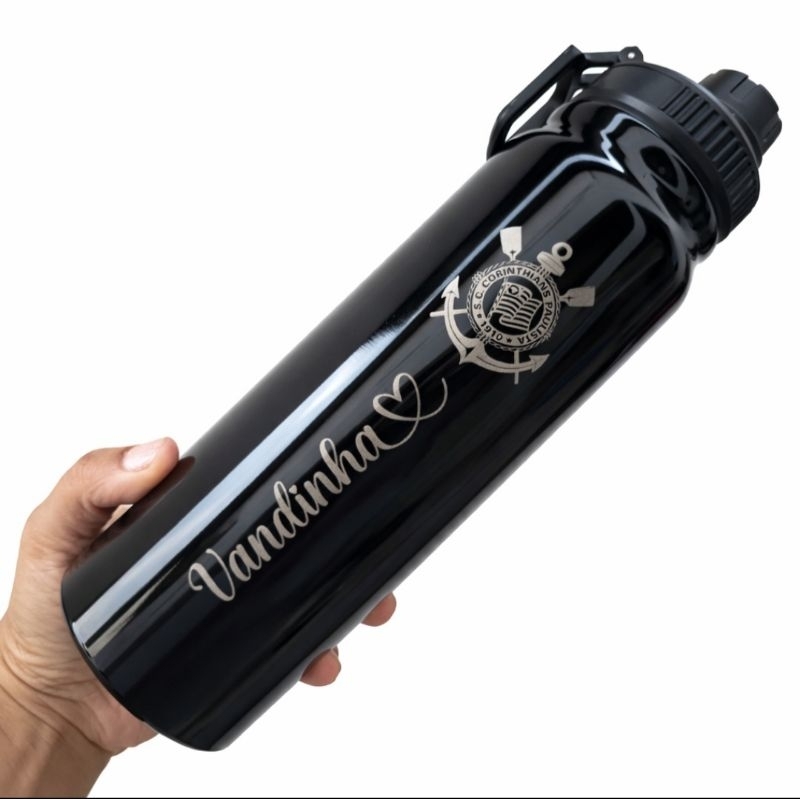 Garrafa Térmica Personalizada com nome time 800ml preta