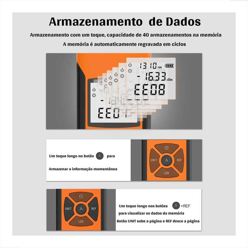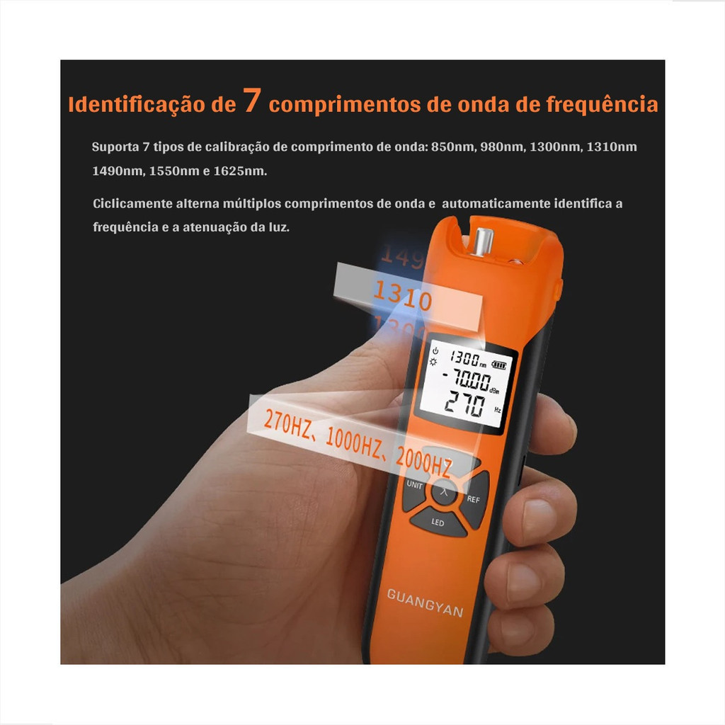 Medidor de Potência Óptica Mini G10 | Faixa -70dBm a +6dBm | LCD Iluminado | Portátil