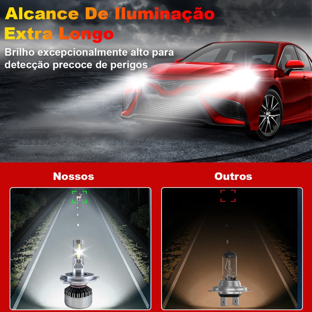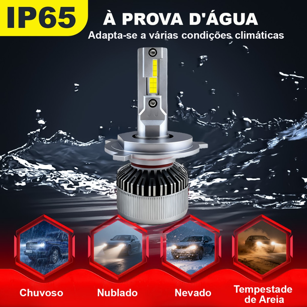 Par Lâmpada LED H7 Super Farol 6500K Branco Frio Alta Potência 12V 24V Carro Moto Caminhão IP65
