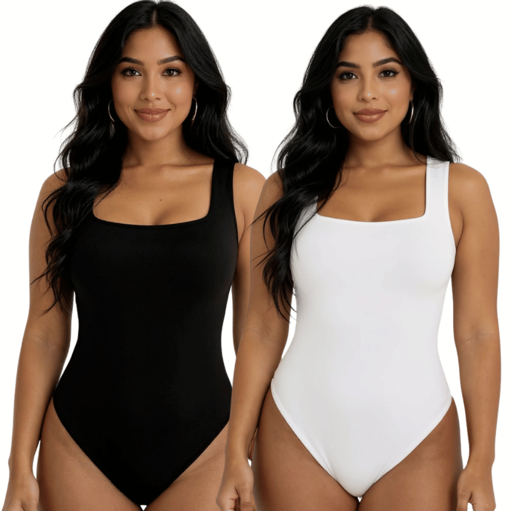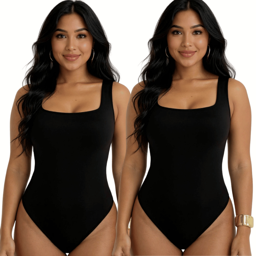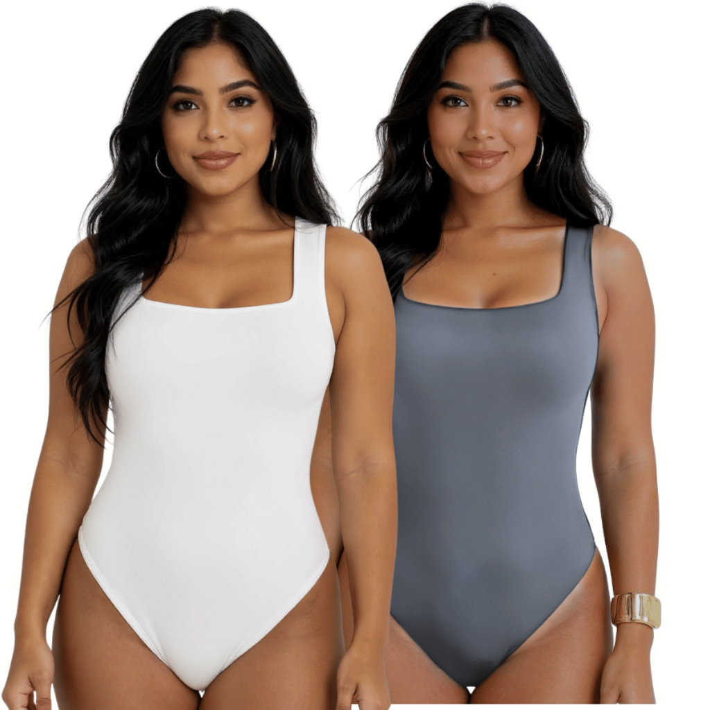 Kit 2 Body Feminino Suplex Premium Decote Quadrado com Forro Básico