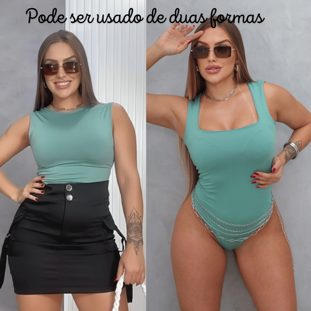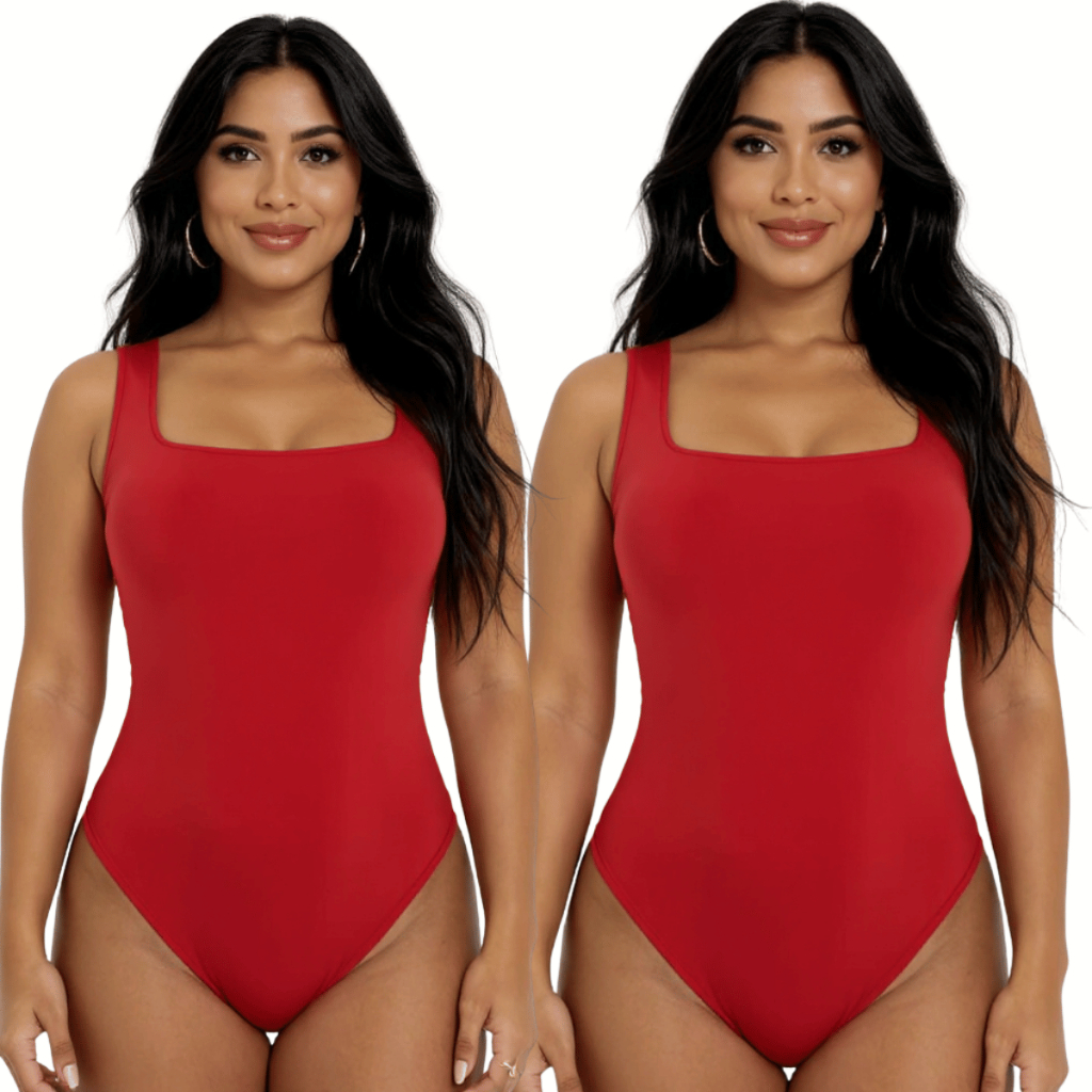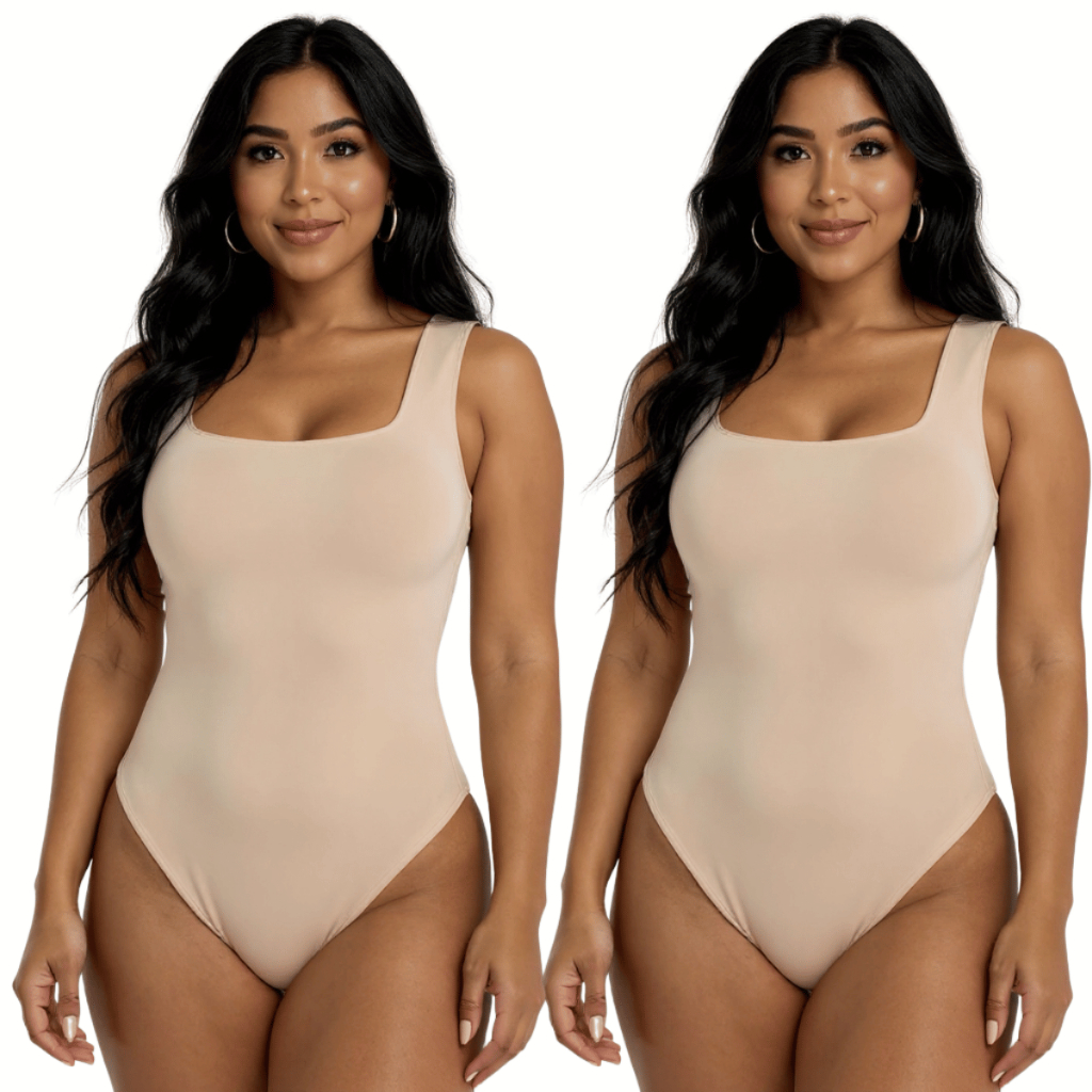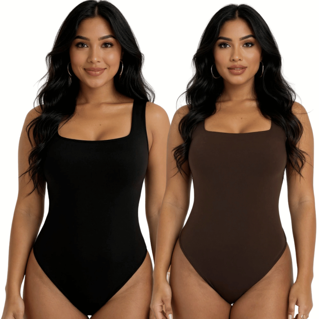 Kit 2 Body Feminino Suplex Premium Decote Quadrado com Forro Básico