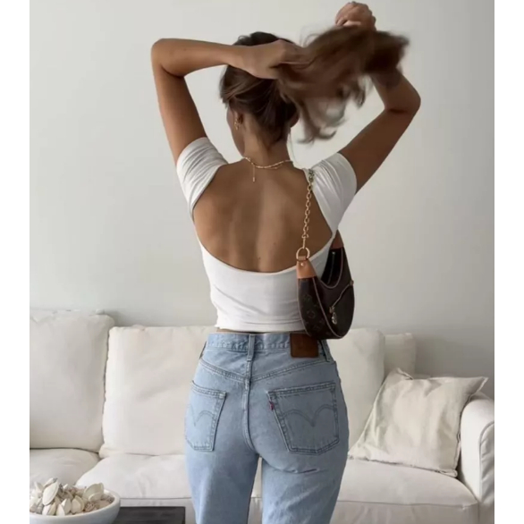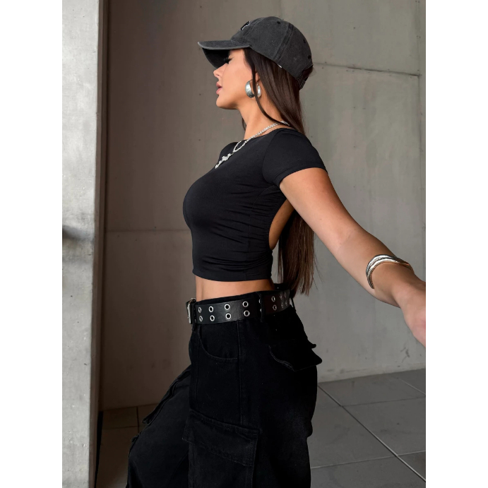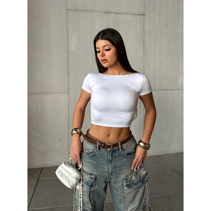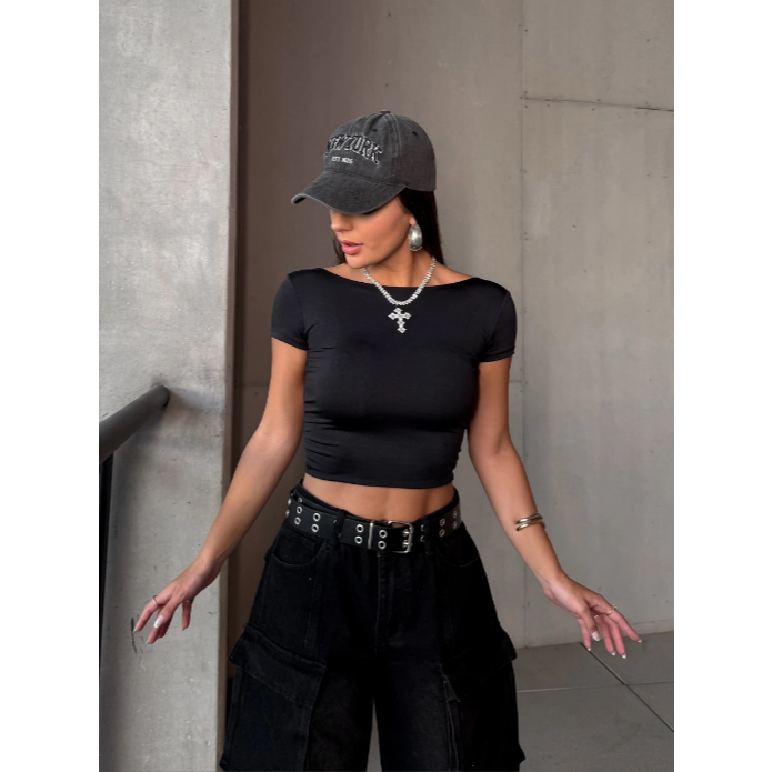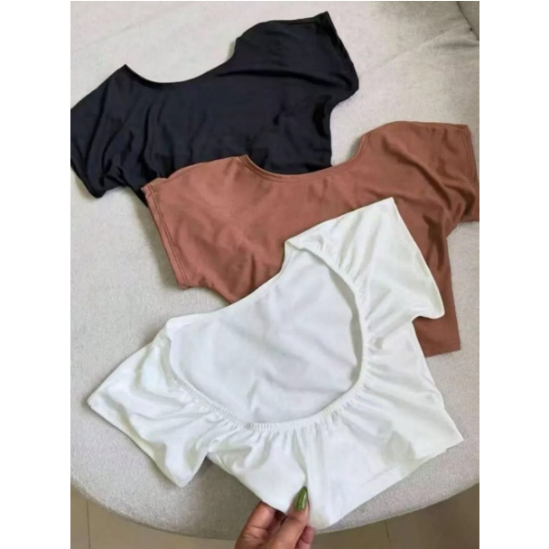 Cropped Costa Nua Feminina Ombro a Ombro manga curta Suplex Baby Tee Liso Casual Básico Tecido Duplo