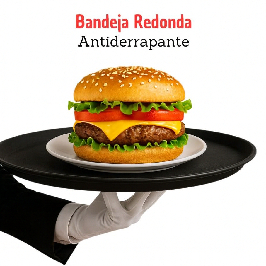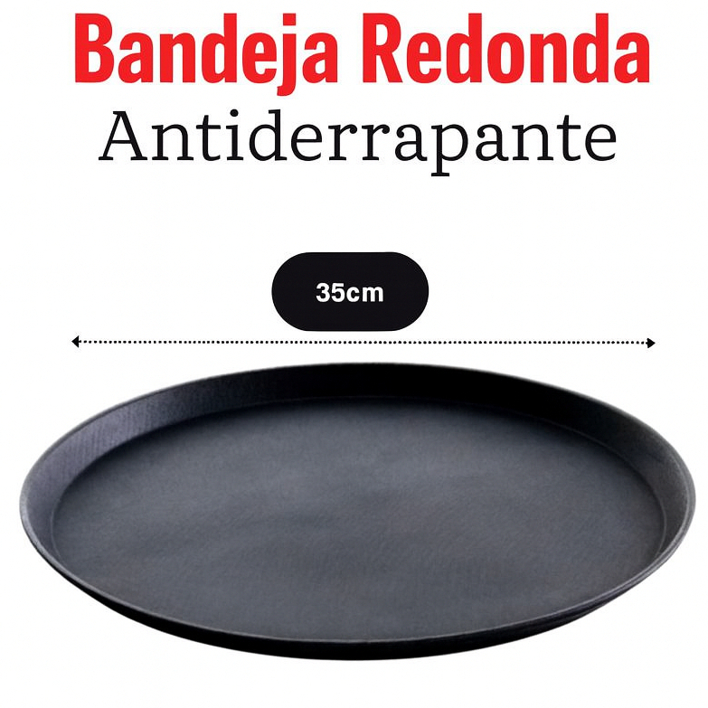 BANDEJA DE BAR E LANCHONETE ANTIDERRAPANTE REDONDA 35 CM PRETA.