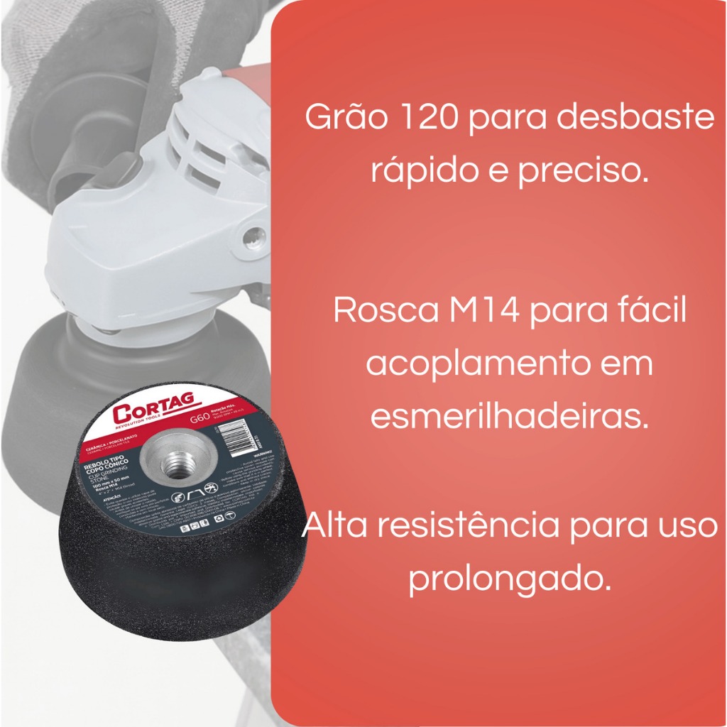 Rebolo Tipo Copo Cônico 100mm Grão 120 Rosca M14