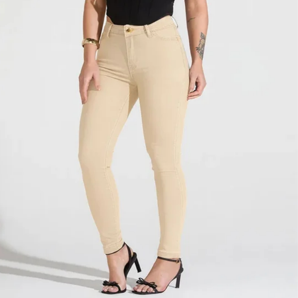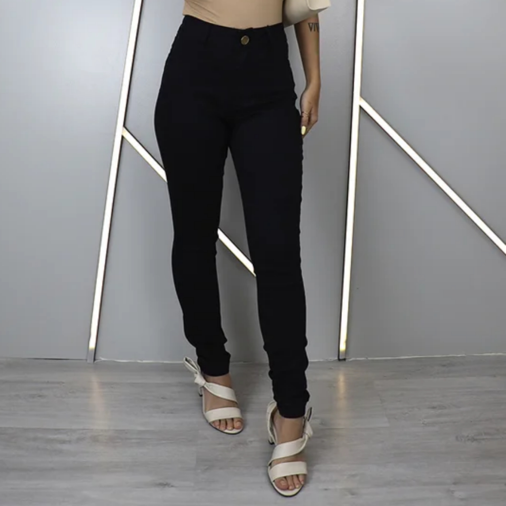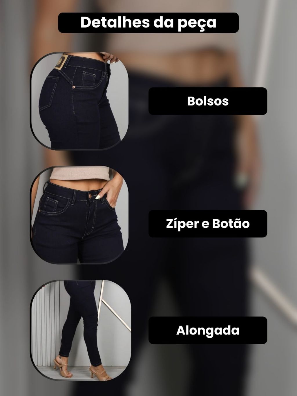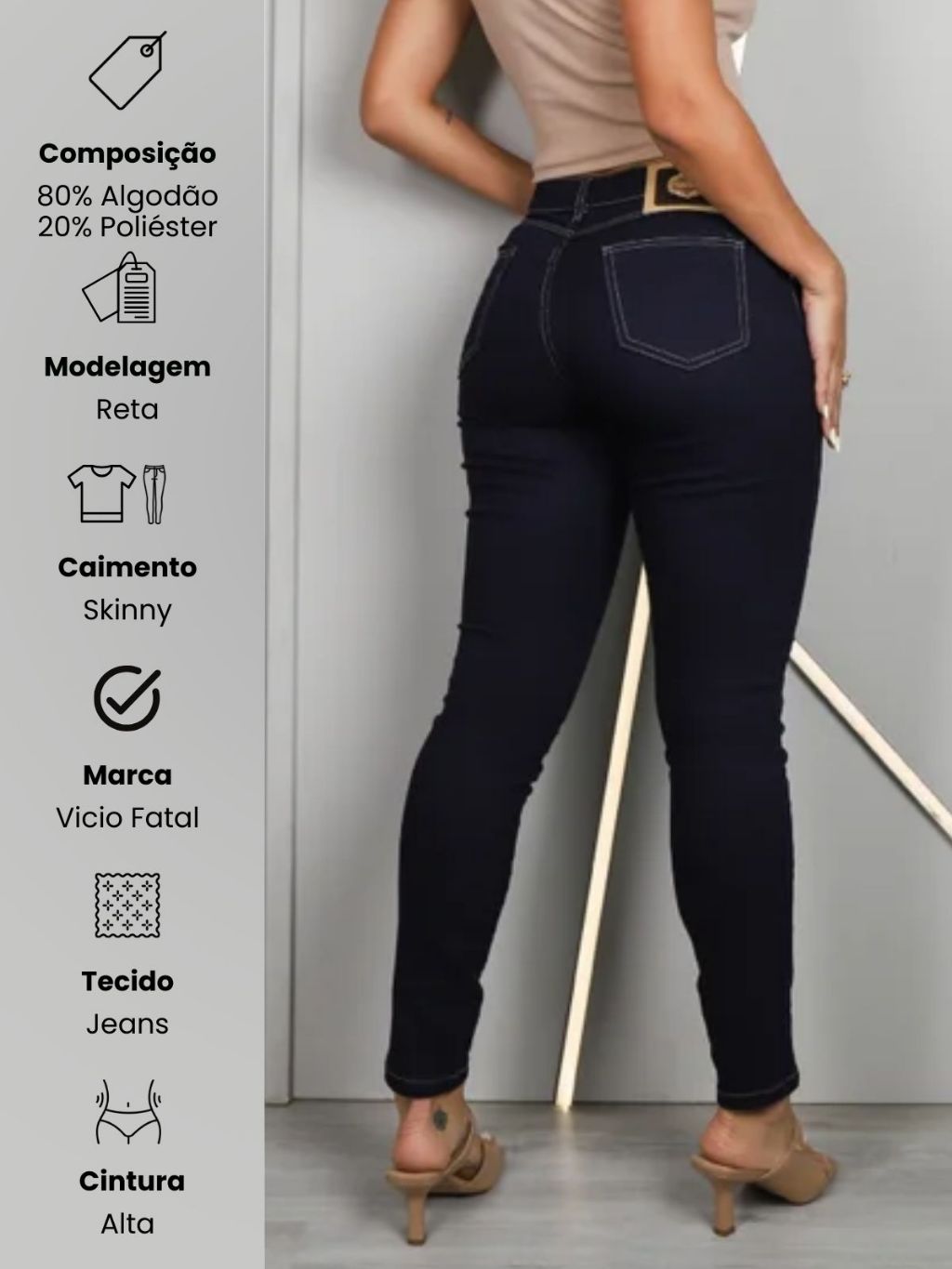 Calça Feminina Jeans Skinny Elastano Reta Cintura Media e Alta Empina Bumbum Modeladora Bolsos