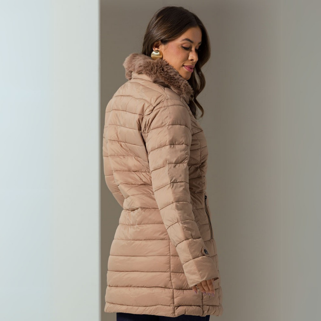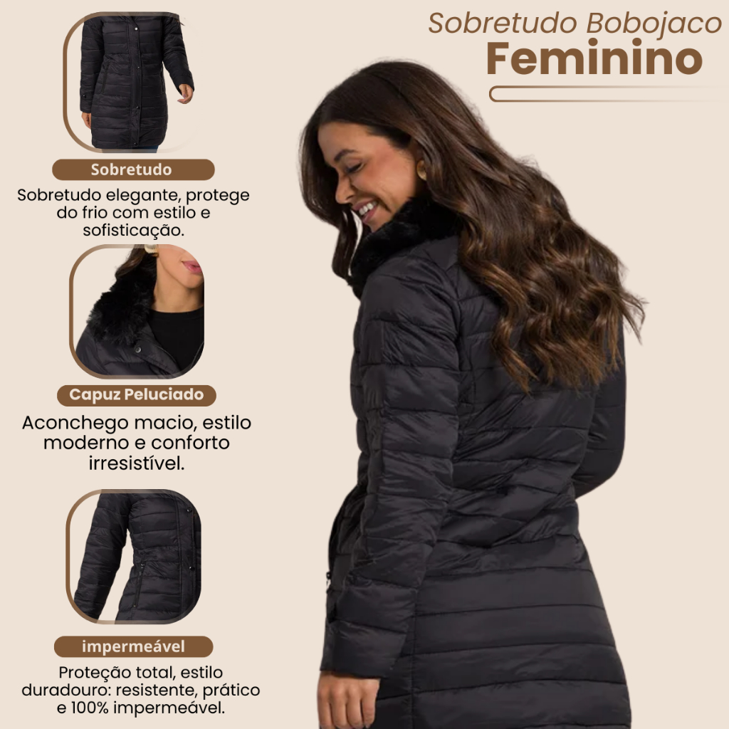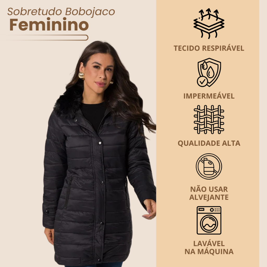 Sobretudo Feminino Nylon Bobojaco Impermeável Gola Peluciado e Removível Repele Liquidos Longo