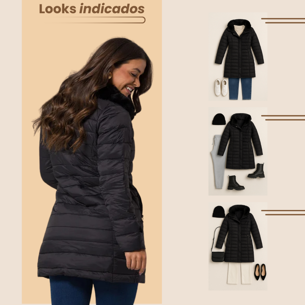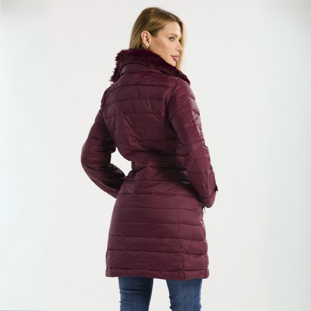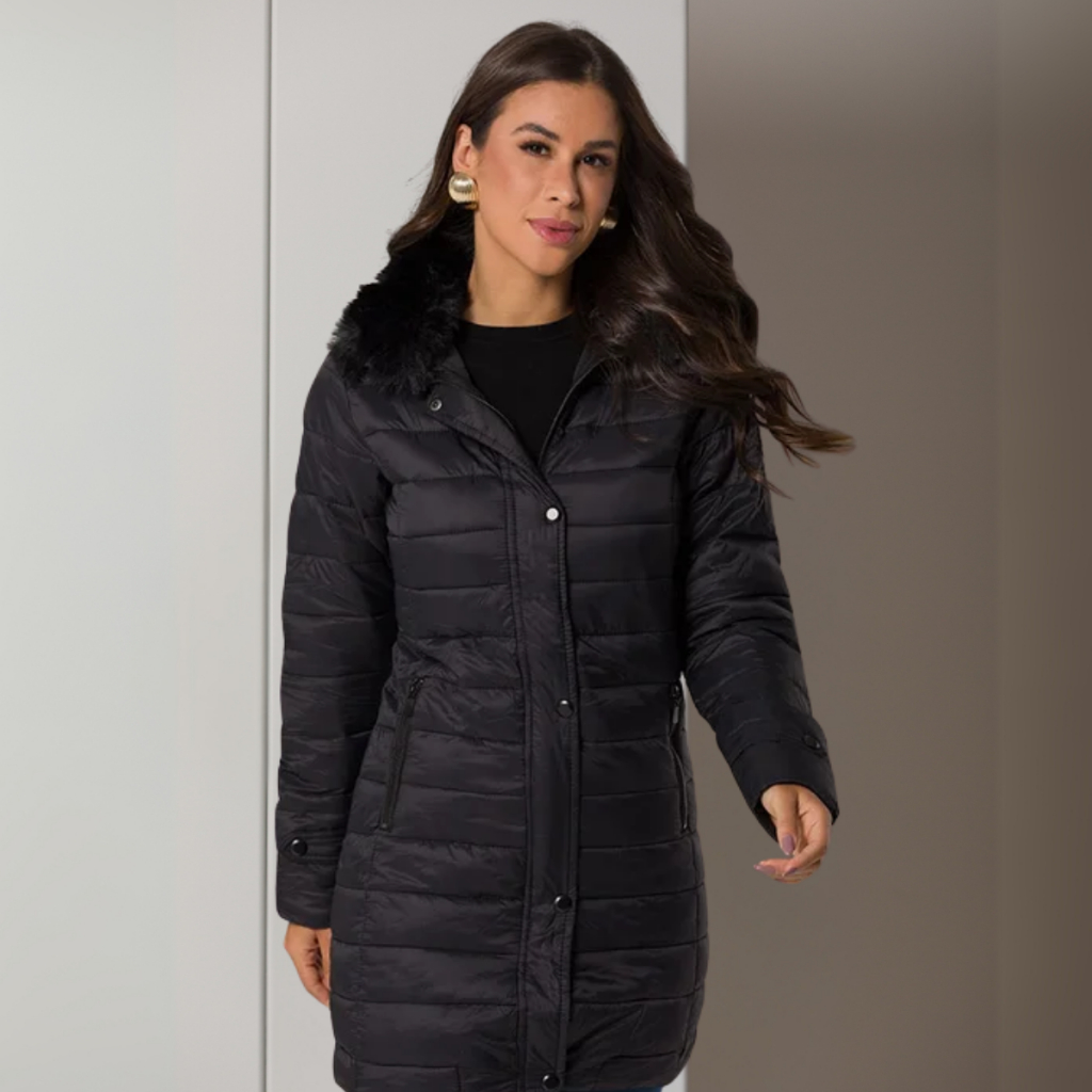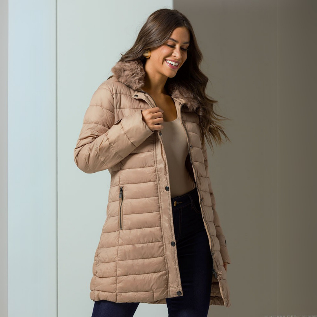 Sobretudo Feminino Nylon Bobojaco Impermeável Gola Peluciado e Removível Repele Liquidos Longo
