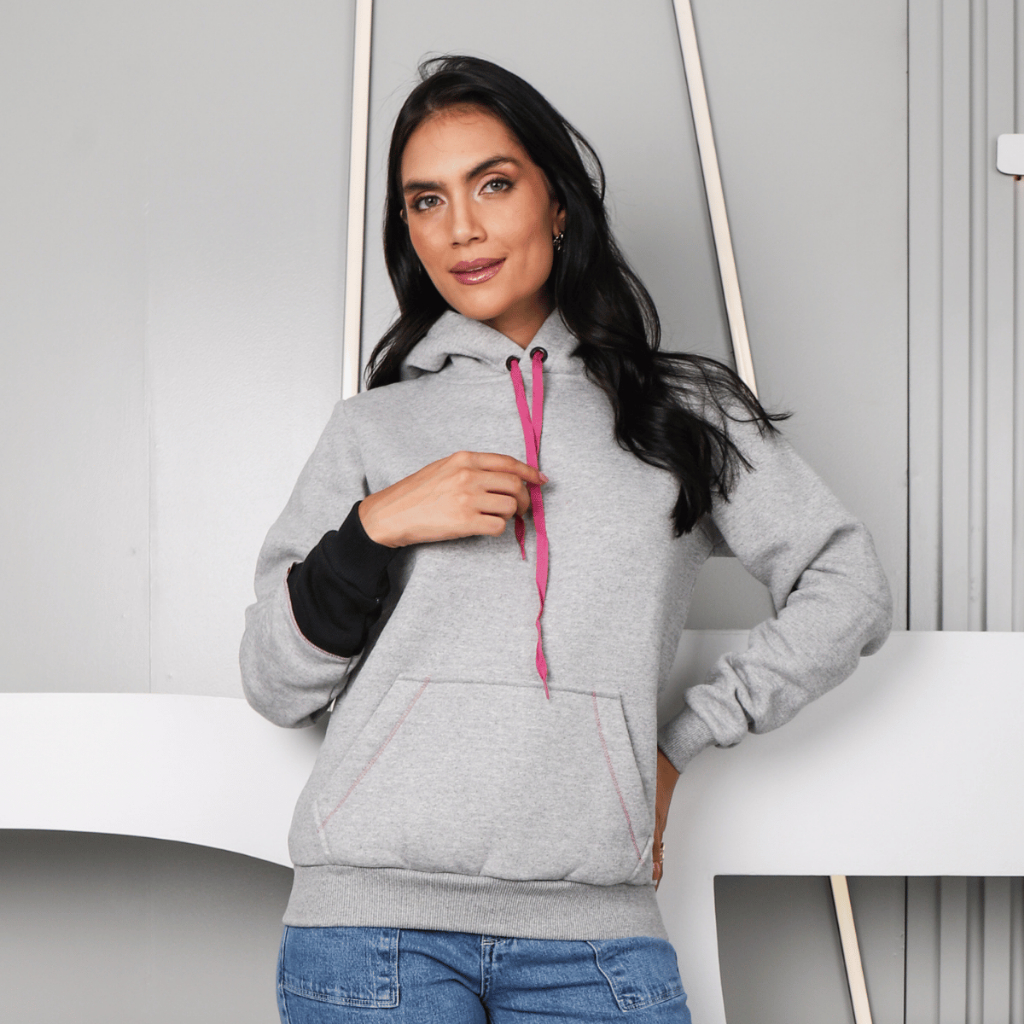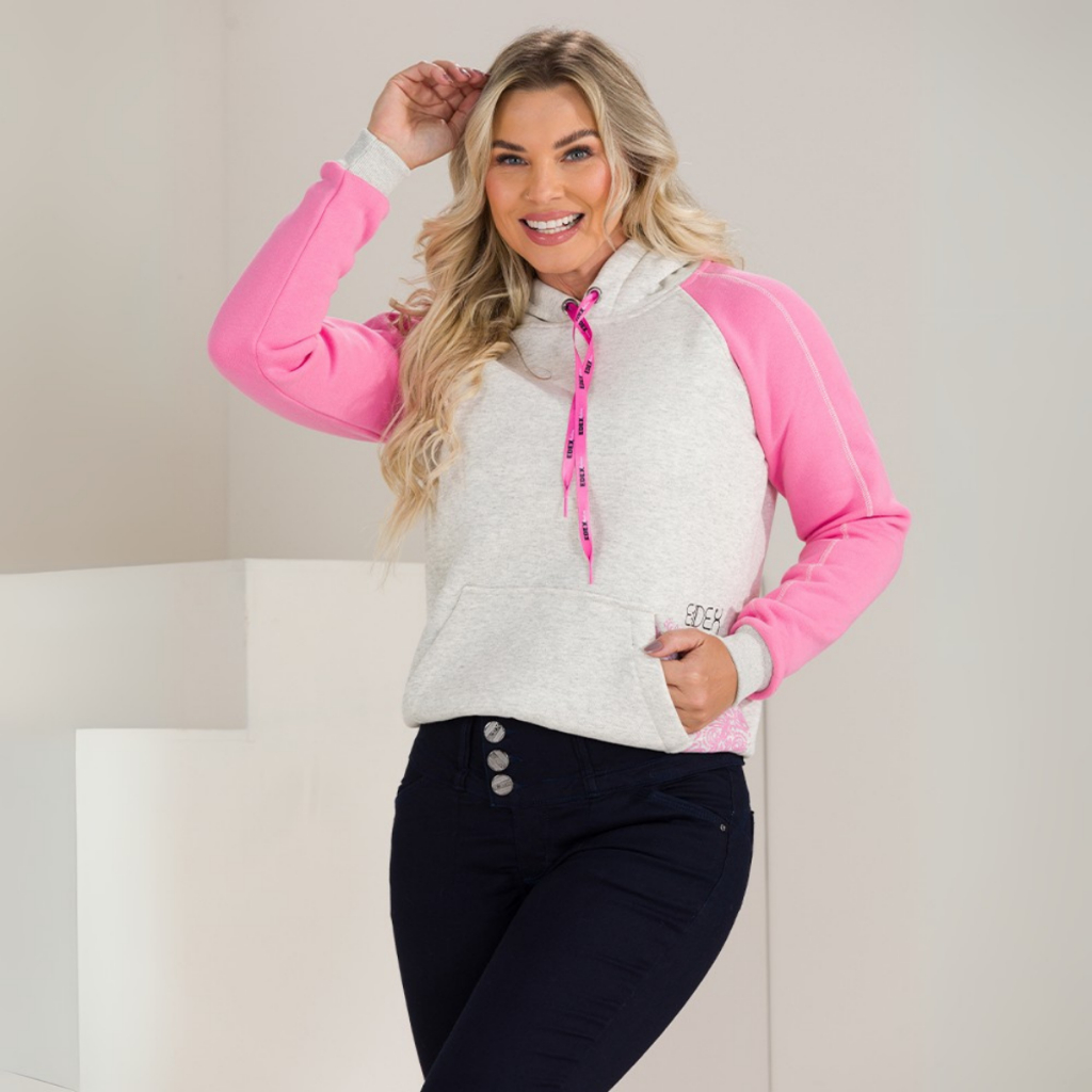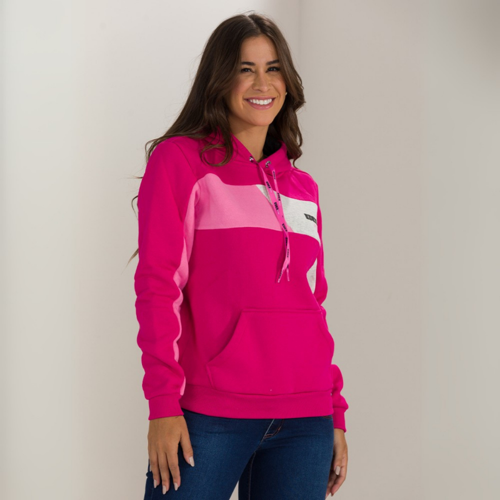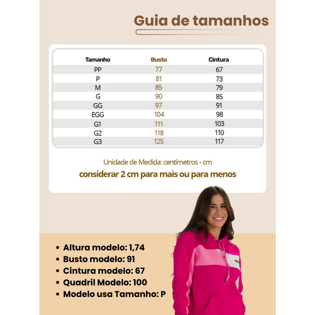 Moletom Feminino Estampado com Capuz Bolso Canguru Forro Peluciado Punho e Barra Canelados Casaco