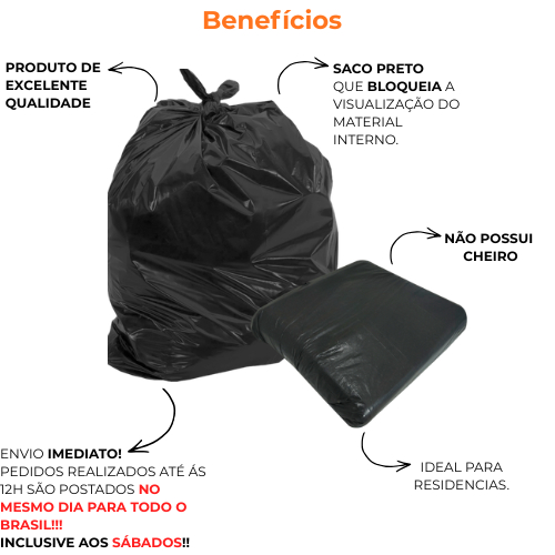 Saco de Lixo resistente c/100/50 unidades | Disponível em 100/60/40/20 litros | Direto da Fábrica | Preto.