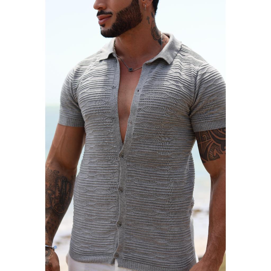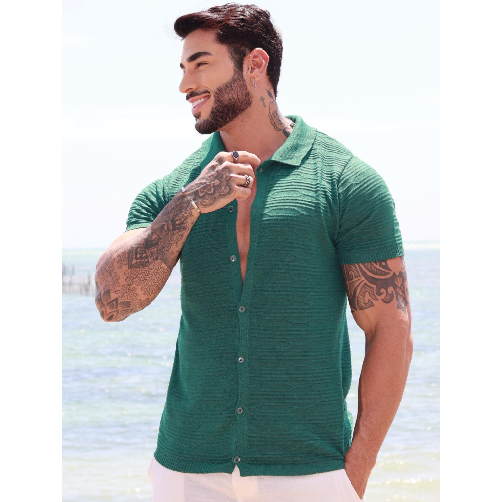camisa masculina manga curta gola polo tricot blusa verão primavera homens casual alta qualidade